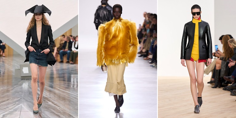 Etro, Louis Vuitton, Bottega Veneta gibi markalar, bu görünümü farklı siluetlerde kucaklıyor. Louis Vuitton nazik işlemeli elbisesine kırmızı bir kazakla aykırı etki katarken, Etro trikolarla bohem stiline yeni bir siluet sağlıyor. Bottega Veneta ise saten salaş elbisesinde beli vurgulamak için koyu renk ve sıkı bağlanmış bir kazakla görünüme başka bir boyut kazandırıyor.