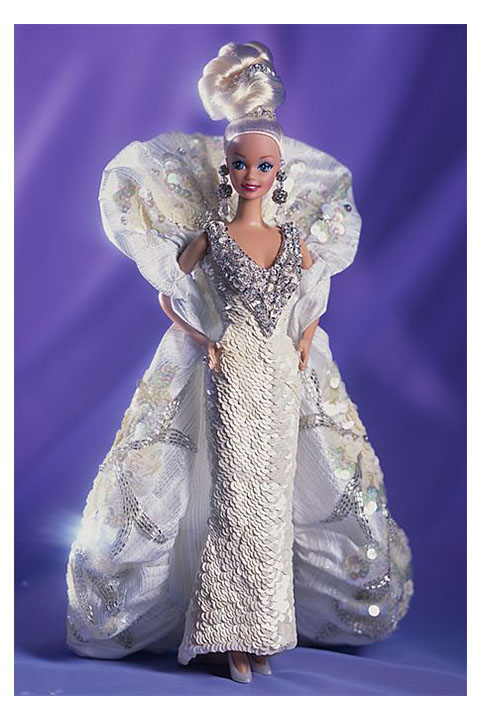 Barbie için bir çok kıyafet tasarlayan Bob Mackie, Platinum Barbie tasarımında 8000 adet elle dikillen boncuk ve payet kullandı.