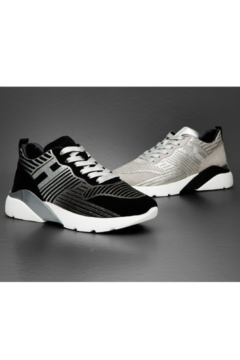 Kalın bağcıklı maksi botlar, gümüş ve altın renkleri ile  gösterişli uzaydaki olmazsa olmaz özel bir bot tasarımını hayata geçiriyor.  Yeni “RUNNING H385” parıltılı yapısı ve kıvrımlı hatları ile dikkat çekiyor. Markanın ikonlarından “INTERACTIVE” ve “H340” modellerinde uygulanan “batırma” tekniği yürüyüşte uzay boşluğundaki hafiflik hissini vermek üzere özel olarak uygulanıyor.