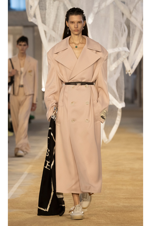 Bu koleksiyon, markanın atletik mirasına saygı duruşunda bulunurken, modern Fransız zarafetini de günümüzün günlük yaşamında vurguluyor. Parlak ve hafif silüetler, duyusal akışkanlık, soğukkanlılık ve şeffaflıkla zenginleştirilmiş, ışıltılı bir enerji yayıyor. 1920’lerin ruhunu yansıtan bir bina, koleksiyona ilham veren dönemi anımsatarak, doğal ışıkla aydınlanan yemyeşil bitki örtüsü ve deniz manzarası sunuyor. Ortada, sporu temsil eden en ikonik hazinelerden birine saygı duruşunda bulunduğu, Britanyalı sanatçı Susie MacMurray tarafından tasarlanmış anıtsal bir ağ heykeli de yer alıyor.