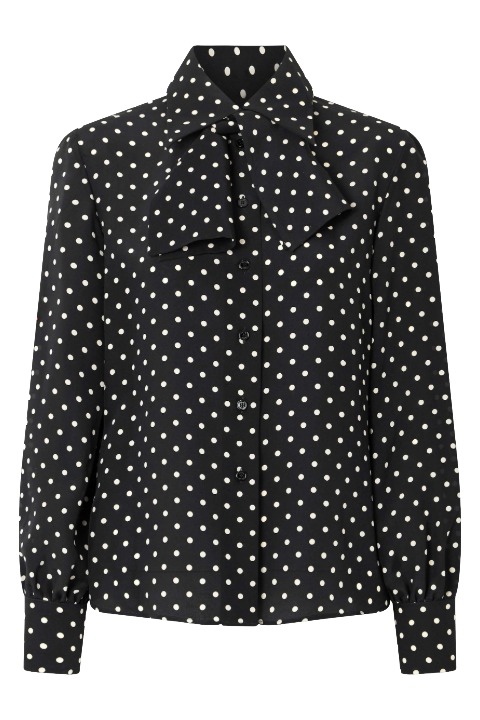 Saint Laurent cephesinde ise fularlı bluzlar daha iddialı bir siluetle ele alındı. Koleksiyonun dikkat çekici bir bölümü, dramatik ölçekte büyük fiyonklarla tasarlanan bluzlara ayrılmıştı. Peki neden şimdi? Geçtiğimiz sezon zirveye ulaşan fiyonk estetiği daha çok gençlik ve masumiyet kodlarıyla ilişkilendirilirken, fularlı bluzların bugünkü yorumu daha “çalışan kadın” odaklı. Fularlı bluz, bu sessiz dramayı stilin merkezine taşıyor.