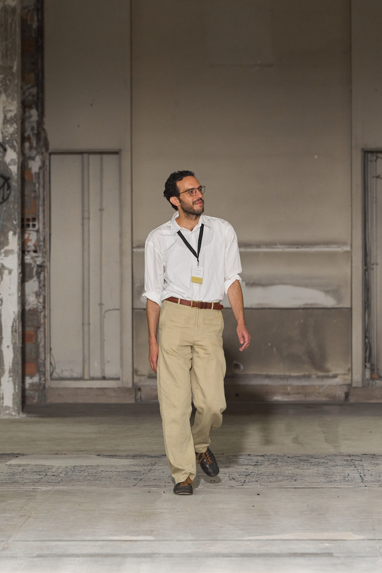 Aşık bir adam, partiden sonra şafakta dolaşıyor. Gömleği iliklenmemiş, kolları sıvanmış. Silüet, yeni bir hayata bürünüyor. Kendime sordum: Resmi olan nedir? Gündelik olan nedir? Bunlar ne hissettirir? Aklıma dar bir kravat, çift düğmeli bir ceket, ağır işlemeli bir kumaş geldi. Ama aynı zamanda bele sarılmış bir pareo, ayağında kum, uyumsuz bir ayakkabı bağı, kabuklar ve kolye olarak taşınan küçük anılar… Bu koleksiyon, kendiliğinden gelen jestlere duyulan çekimi anlatıyor. Ve elbette Lou Reed’in müziği eşlik ediyor.
