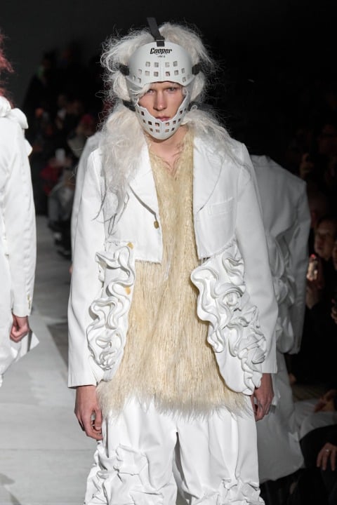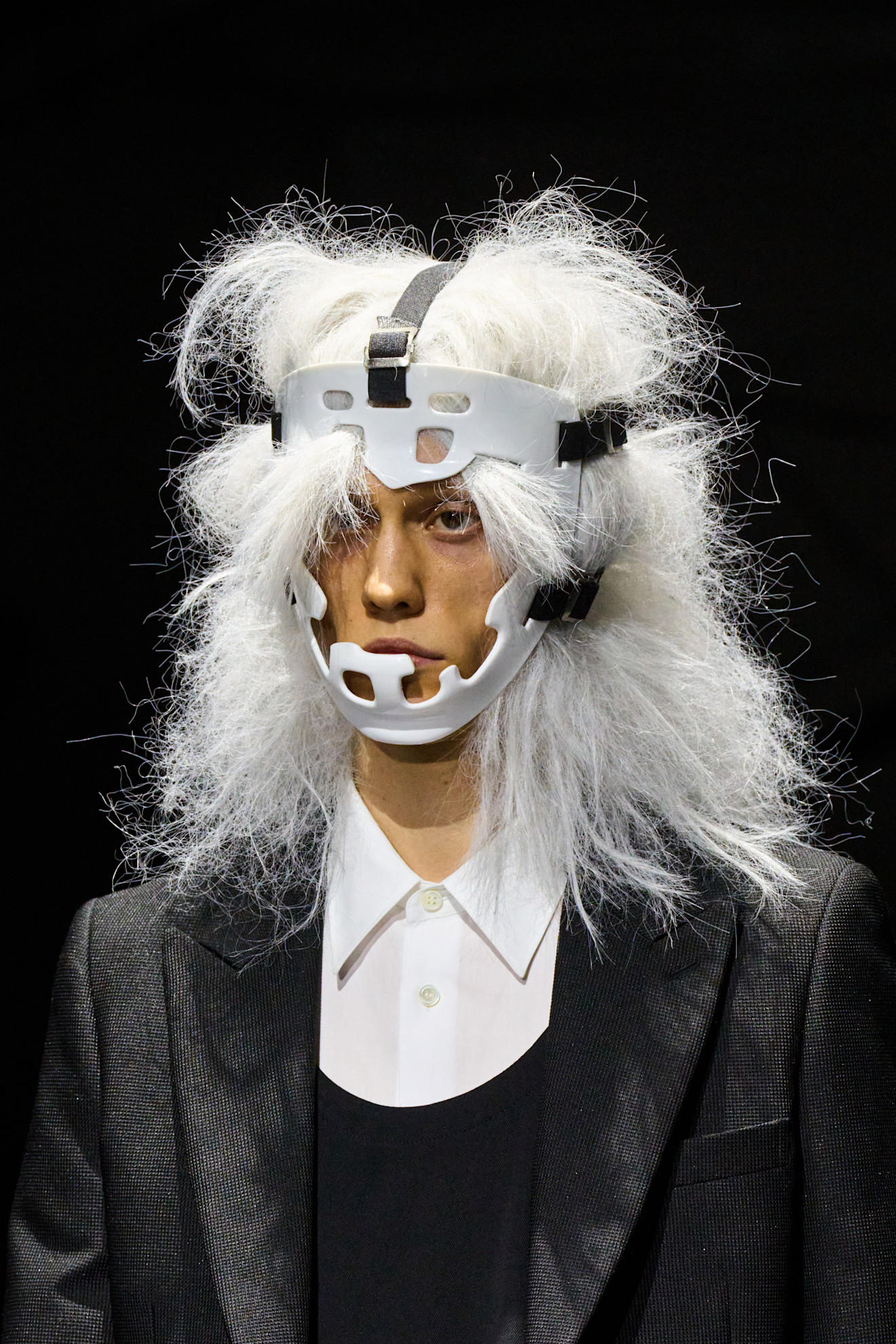 Dekonstrüktif yaklaşımlar, tasarım diline yansıtılmış. Klasik takımlar markanın DNA'sına uygun olarak çağdaş bir estetikle yeniden ele alınıyor. Bu sayede Comme Des Garçons'un marka kodlarında olan avangart ve çarpıcı tutumlar koleksiyonla kesişimsellik gösteriyor. Yüksek volümlü ceketler, stil hacmini yükseltme motivasyonunda. Sonbahar/Kış 2026 şovunun renk skalası ise beyaz ve siyah dominasyonunda da diyebiliriz. Şovda gördüğümüz başlıkların ise özel olarak Brezilya'da üretildiği söyleniyor.
