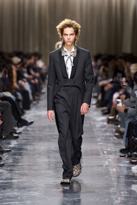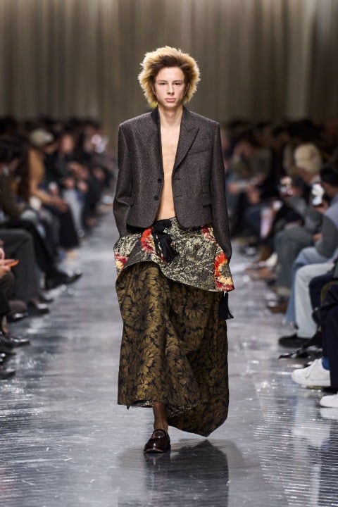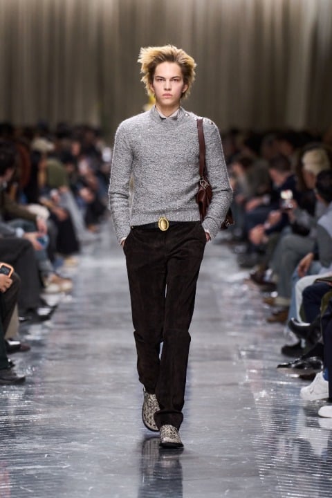 Resmiyet kodları, Dior’a özgü imzalar, Paul Poiret’den gelen yankılar ve denimle parkaların buluşması, ilk bakışta çelişkili görünen fikirleri aynı çatı altında toplamayı başarıyor. Siluetler ince ve kontrollü; uzatılmış ceketler, bilinçli şekilde küçültülmüş blazer’lar, fraklar, kısa Bar ceketler ve dar kesim pantolonlar koleksiyonun odak noktasındaki tasarım öğelerinden.