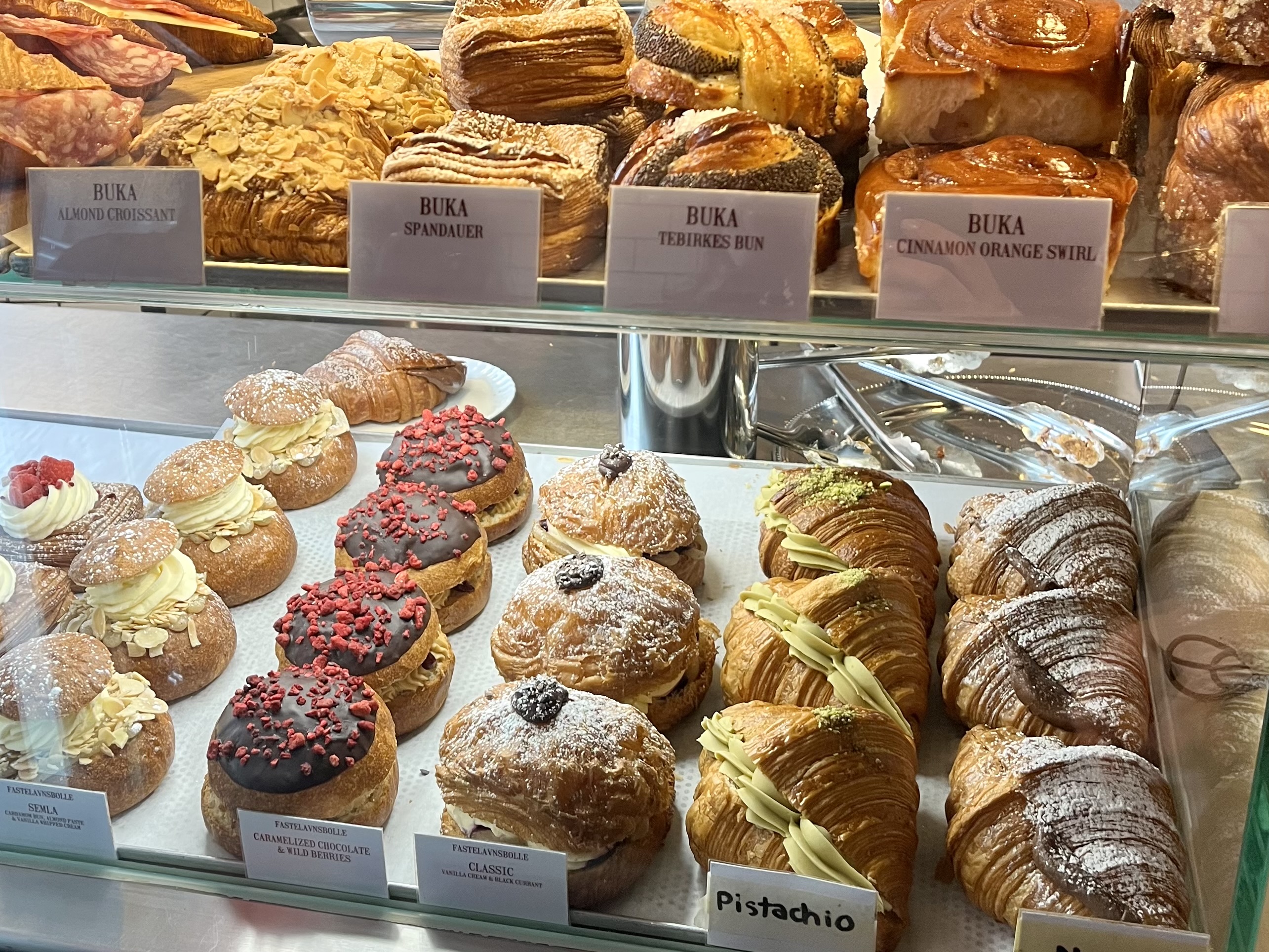 Şehirde yürürken bir kahve molası ya da hızlı bir kahvaltı için bir sürü kafe opsiyonu var. Bunlardan "Hart Bakery" şehrin ikonik tarçınlı çörekleri ya da "fastelavnsbolle" isimli krema dolgulu çörek için müthiş bir durak. ''Andersen & Maillard'' İskandinav pastacılığın modern bir yorumu. "Buka"daki fıstıklı kruvasanı mutlaka denemenizi tavsiye ederiz. "Hans" da bir başka keyifli bir alternatif. Tümünde kaliteli kahve bulacağınız garanti.