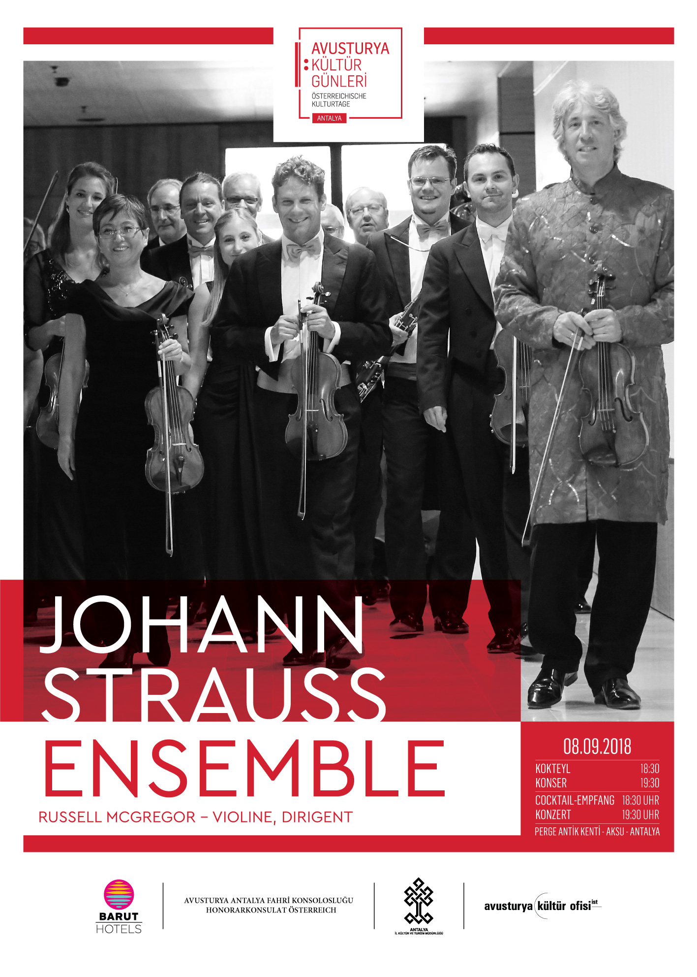 Antalya Avusturya Fahri Konsolosluğu ve Avusturya Kültür Ofisi İstanbul tarafından hazırlanan Johann Strauss Ensemble konseri; Antalya İl Kültür ve Turizm Müdürlüğü ve Barut Hotels katkılarıyla düzenlenecek.