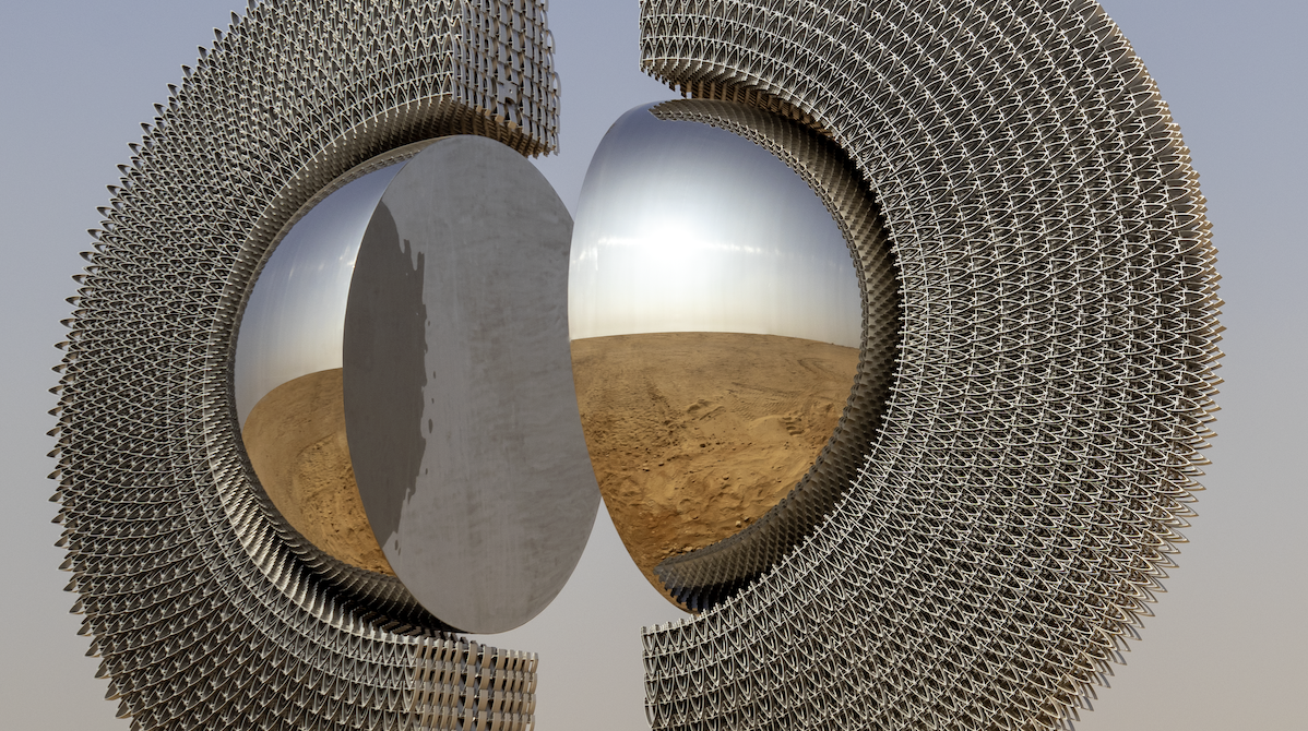 Küratör Ayça Okay tarafından kavramsallaştırılan eser bir yıllık araştırma, saha gezileri ve üretim sürecinin ardından Asaş Sanat atölyelerinde alüminyumdan inşa edildi. Yaklaşık 6 metreye 5 metre boyutlarında ve 2,5 metre derinliğindeki bu dev yapı antik Mısır’ın Shen halkasından aldığı ilhamla hem bütünlüğe hem de sonsuzluk fikrine çağdaş bir yorum getiriyor.