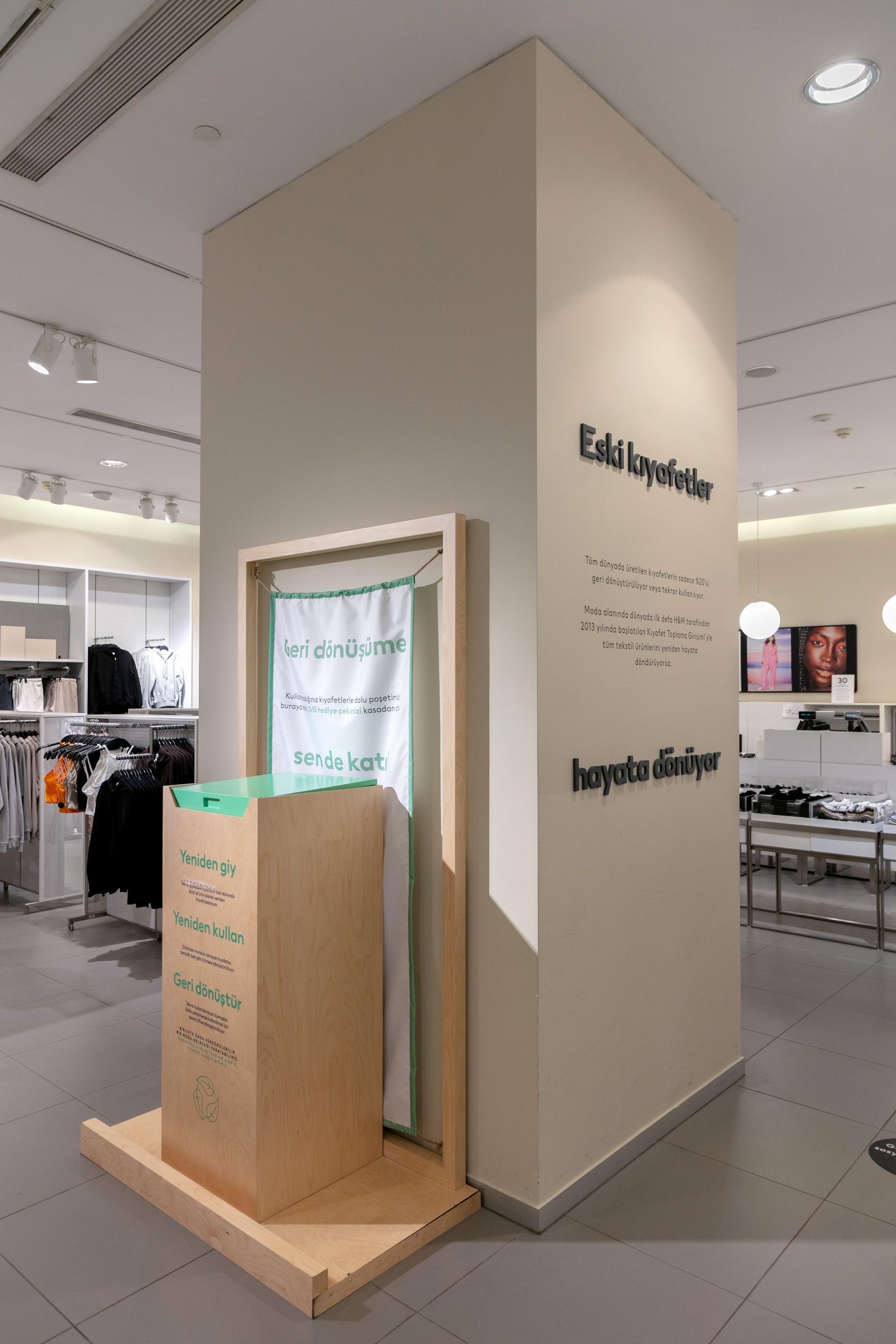 2013 yılında Globaldeki ilk Kıyafet Toplama Girişimini başlatan H&M döngüsel modanın öncüsünü olmak istiyor. Kıyafetlerin yeniden giyilmesi, tekrar kullanılması veya geri dönüştürülmesi için müşteriler tarafında kullanılmayan kıyafetler mağazalarda bulunan kutulara atılıyor. Bu proje ile beraber doğaya katkı sağlamak ve geri dönüştürmek üzere Türkiye’de 2013’den beri yaklaşık 2500 ton kıyafet toplandı.