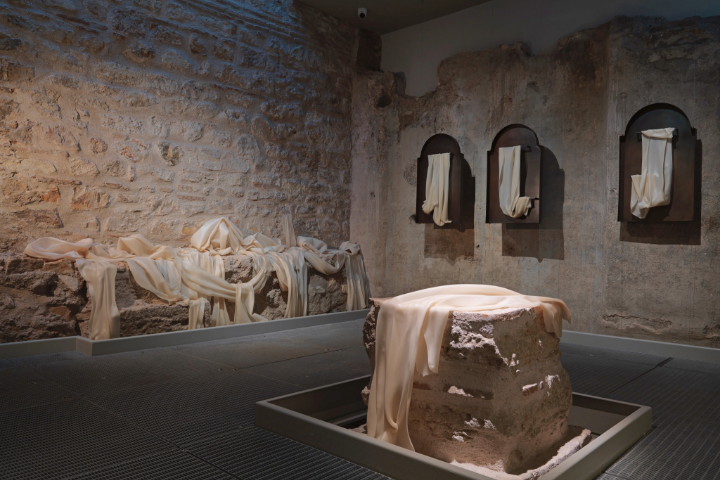 Küratörlüğünü Anlam de Coster’ın üstlendiği sergi 16. yüzyıldan kalma hamamın henüz gün yüzüne çıkarılmış Bizans sarnıcı, soğukluk bölümleri ve bahçesine yayılıyor. Ziyaretçiler sergiyi geleneksel bir hamam ritüeli gibi deneyimliyor: bedenin ve ruhun arındığı, kimliklerin geride bırakıldığı, zamanın yavaşladığı bir yolculuk gibi.
