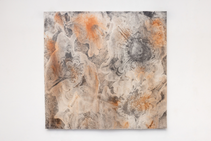 Minchin’in “Hydromancie” adlı serisinden yeni üretimler, su, pigment ve yanık izlerinin etkileşimiyle oluşturulmuş kağıt eserlerden oluşuyor. Ayrıca sanatçı, erimiş kalayın dantel gibi formlara dönüştüğü yeni yerleştirmeleriyle kurşun dökme gibi kadim Anadolu ritüellerine de çağrışım yapıyor. Minchin, İstanbul sürecinde şehrin farklı kültürlerinden gelen ritüellerinden de etkilenmiş. Yerel kiliselerden topladığı yarı yanmış mumlarla ürettiği işler, kolektif hafızayı ve arzuyu heykelsi bir forma dönüştürüyor.