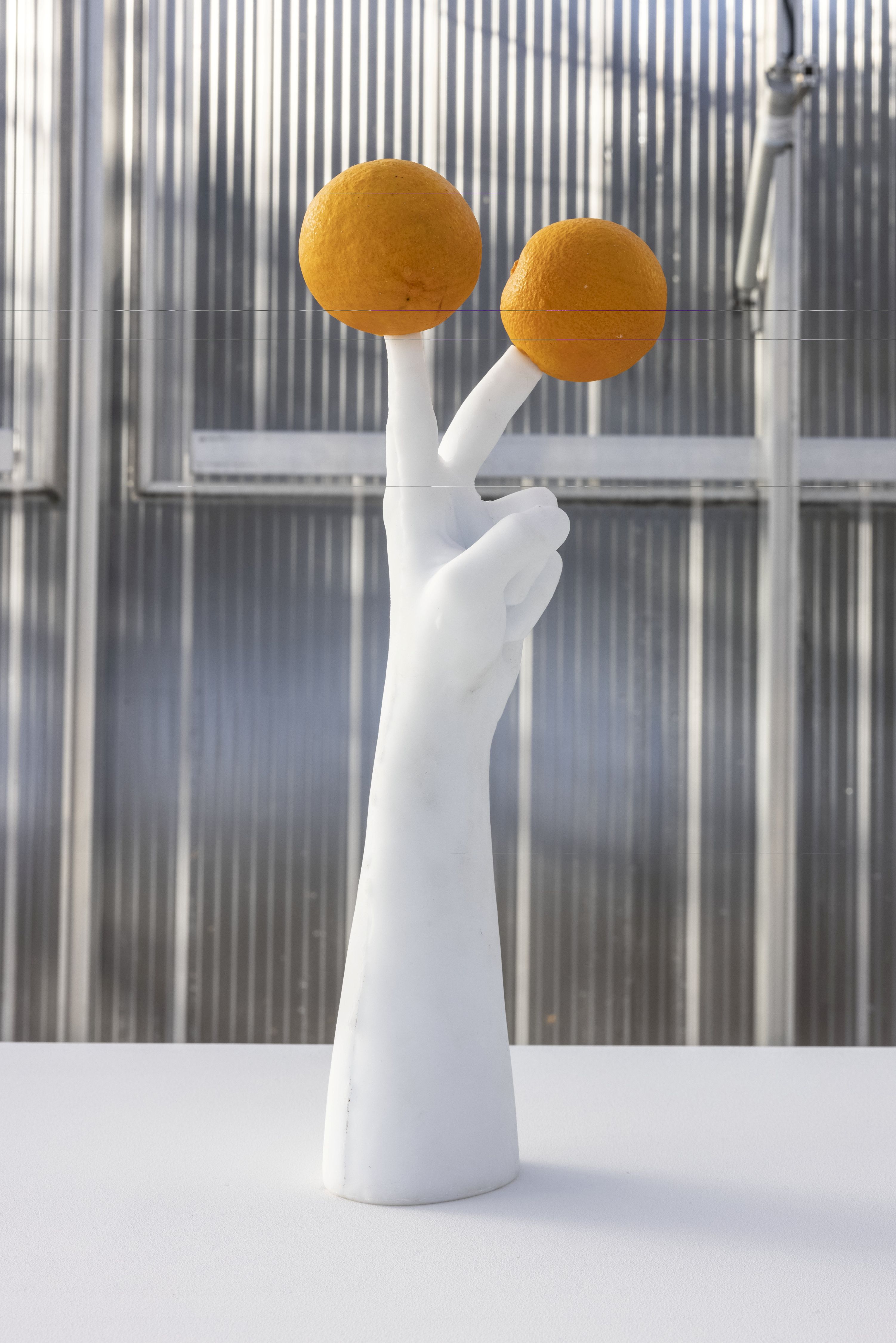 Robert Elfgen’in mekanı yeniden kurgulayan işleri ve Gülfem Kessler’in malzeme-form arasındaki araştırmaları form ve mekan algısını dönüştürürken, Ahmet Oran’ın modernist geleneği bugüne taşıyan pratiği ve Oda Jaune’un sürreal anlatıları seçkinin çağdaş yorum katmanını güçlendiriyor.Erwin Wurm - Iced Orange Tree (Seta)