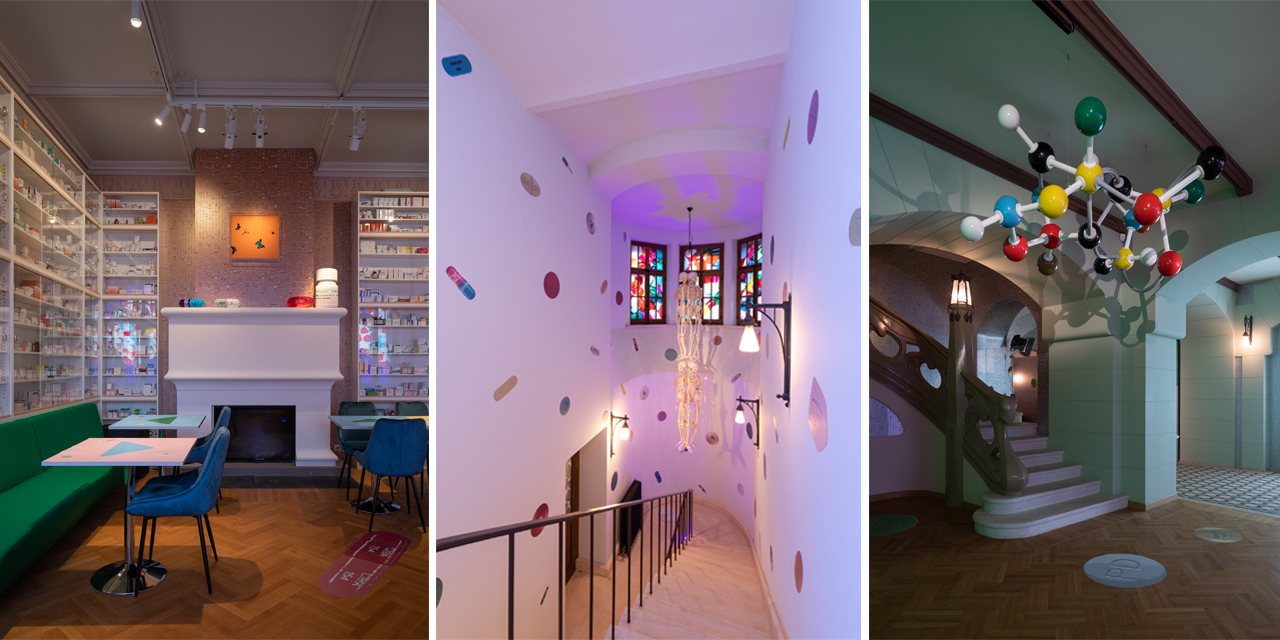 Moskova’nın Patriarch Ponds bölgesinde Art Nouveau simgesi olan Levenson Mansion, 1900 yılında Mimar Fyodor Sketchel tarafından tasarlanmış. Damien Hirst Levenson Mansion için “ Miuccia tarafından Moskova’daki Prada Mode için Pharmacy’i yeniden tasarlamaya davet edildiğim için çok heyecanlıyım, köşkün dört katı bunun için mükemmel bir yer. Her zaman harika restoranların sanat olabileceğini düşündüm ve eczane insanlarla ve sanatla dolu, yaşayan ve nefes alan bir sanat eseridir.” Diyor.