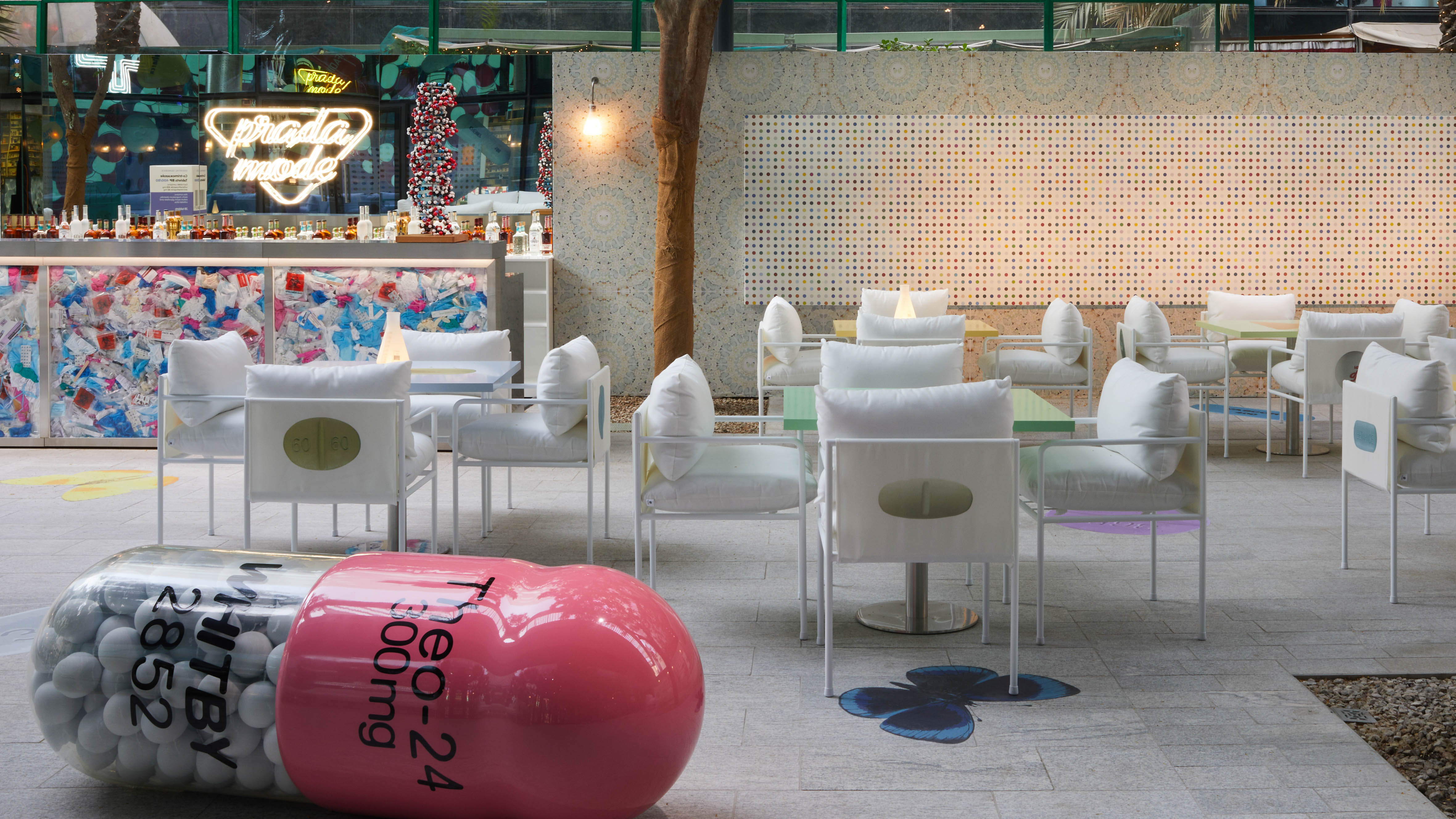 Prada Mode Dubai'de, 2021'de Moskova'daki Prada Mode'da sunulan yinelemenin ardından Damien Hirst imzalı yeni bir Pharmacy baskısını sunacak. Hirst, 1998'de Londra'daki Notting Hill'deki Pharmacy restoranını, New York Cohen Galerisi'nde aynı adı taşıyan açılış kurulumundan altı yıl sonra yarattı.