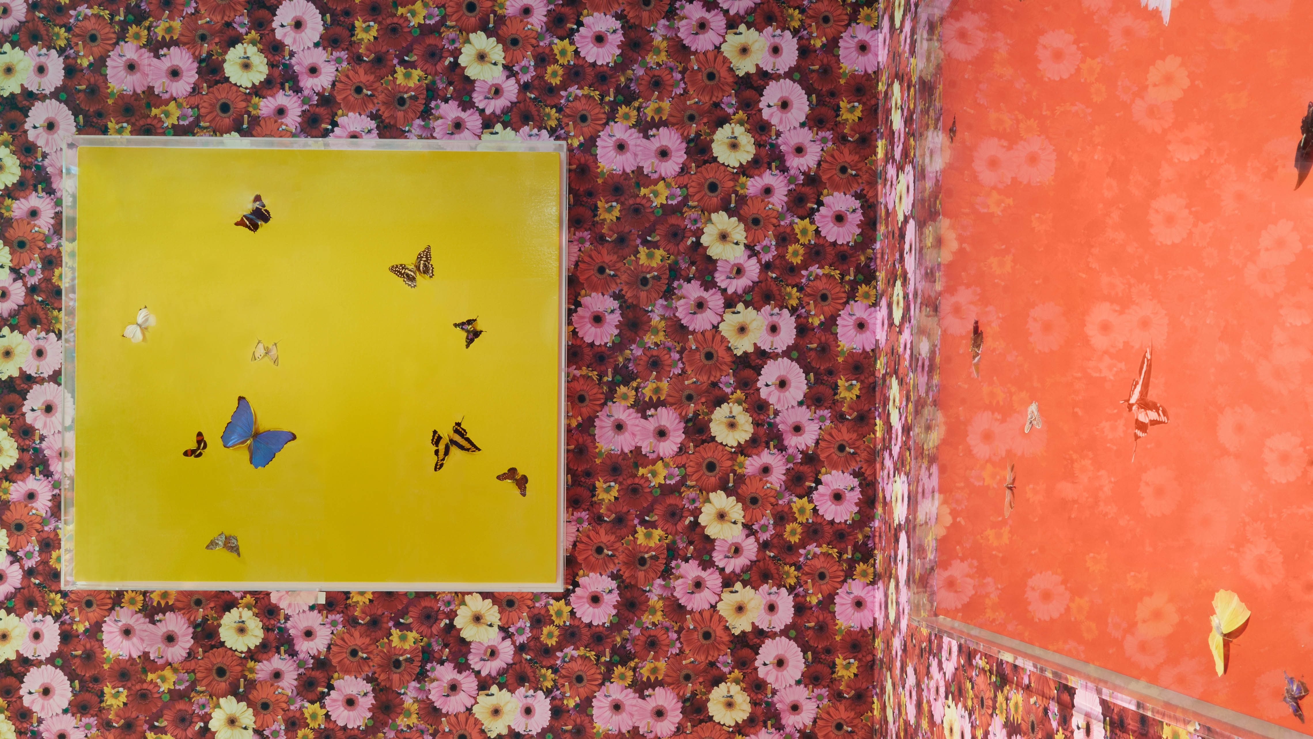Pharmacy, Hirst'ün yerden tavana kadar ecza dolapları ve özel olarak yapılmış kelebek tablolarından oluşan bir enstalasyonda tam işlevli bir restoran ve bar olarak tasarlandı. Hirst tarafından tasarlanan mobilyalar, penceresindeki devasa bir moleküler model gibi mimari detaylar, ışıklı kutular ve bir reçeteli ilaç kataloğundan alınan bir duvar kağıdı tasarımı mevcuttu. Bunun Prada Mode için özel olarak yapılması çok uygun. Çünkü orijinal restoranın personel üniformalarını sanatçının uzun süredir arkadaşı olan Miuccia Prada tasarladı.