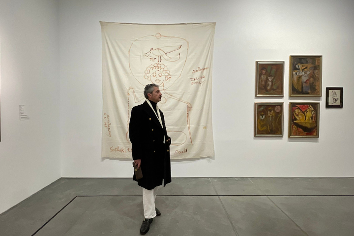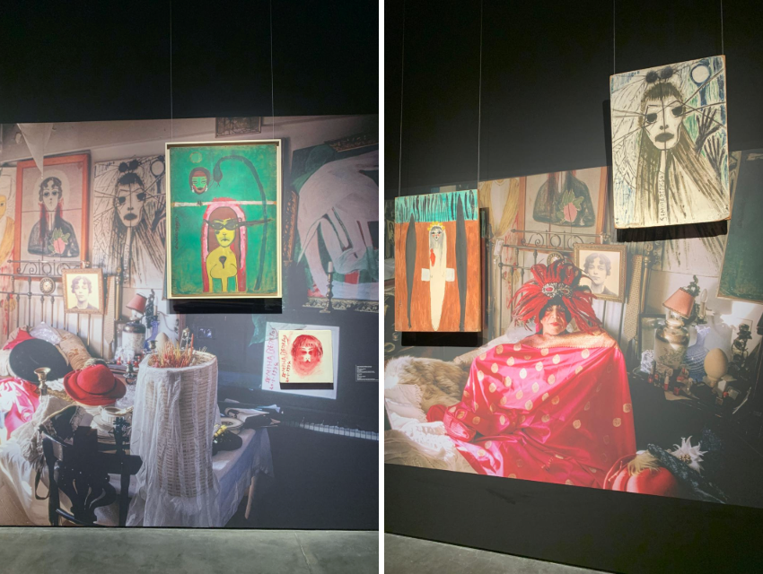 Sergide ilerledikçe resimler bir duvara asılı olmaktan çıkıyor, mekanın içinde asılı kalıyordu. Kumaşın ağırlığı, çizginin aceleciliği, figürlerin tamamlanmamış hali… Hepsi sahneye ait bir geçicilik taşıyordu. Sanki bu imgeler sabitlenmek için değil, bir an görünüp yeniden kaybolmak için yapılmıştı. Büyük yüzeylerdeki figürler kostüm ile beden arasında asılı duruyor, resim bir portre olmaktan çok bir hale dönüşüyordu. O an anladım ki Berksoy’un dünyasında resim, bakılan bir şey değil; içine girilen bir sahneydi.