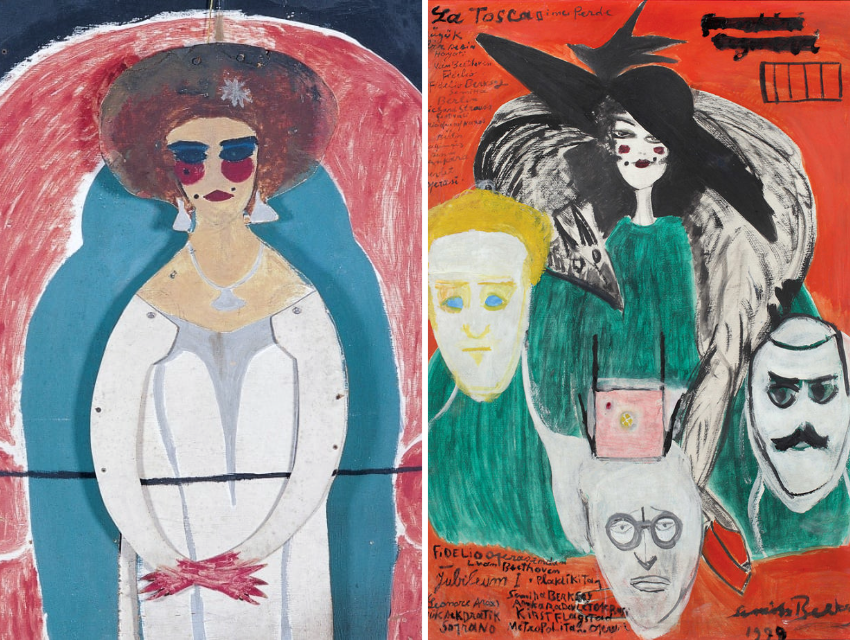 Sergide dolaşırken Semiha Berksoy’un sesi yalnızca duyulan bir şey değildi, mekanın içinde dolaşan bir gerilim gibiydi. Videolardan yükselen o ses kusursuz olmaya çalışmıyor, aksine kırılma ihtimalini içinde taşıyordu. Opera burada ihtişamdan çok açıklıkla ilgiliydi — sesin saklanmadan, korunmadan ortaya çıkmasıyla. Resimlere baktıkça bunu daha net hissettim. Fırça darbelerindeki sertlik, yüzlerdeki doğrudanlık, renklerin zaman zaman taşan hali… Hepsi aynı risk duygusunu taşıyordu. Sanki ses tuvalin içinde kalmaya devam ediyor, resimler o sesin sustuğu yerde konuşuyordu. Opera sahneden çekilmiş ama varlığını kaybetmemişti, yalnızca biçim değiştirmişti. O an sergi bir izleme deneyiminden çok sesin bedenden çıkıp imgeye dönüştüğü bir alan haline geldi.