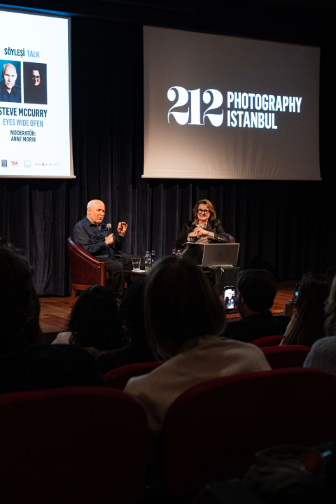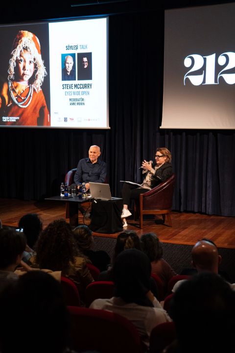 212 Photography İstanbul kapsamında gerçekleşen söyleşi, sanatçının “The Haunted Eye” sergisine eşlik eden nitelikteydi. Söyleşi boyunca küratör Anne Morin’in sorularıyla yön bulan sohbet izleyiciyi McCurry’nin 50 yılı aşkın yolculuğuna tanıklık etmeye davet etti.