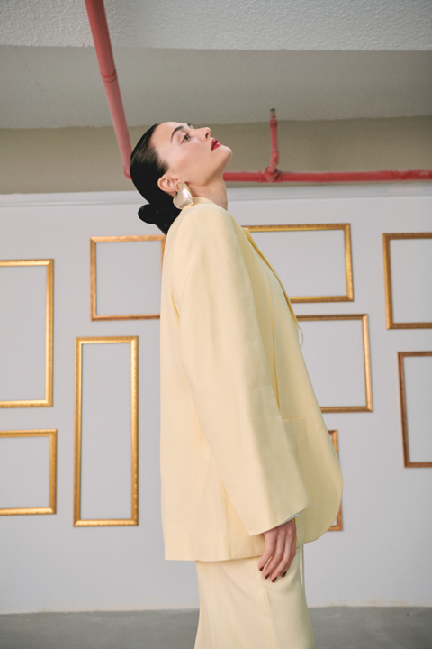 Esra Bilgiç: Ceket ve Pantolon: Jacquemus / Beymen Bluz: Zara Küpe: Gügü Design