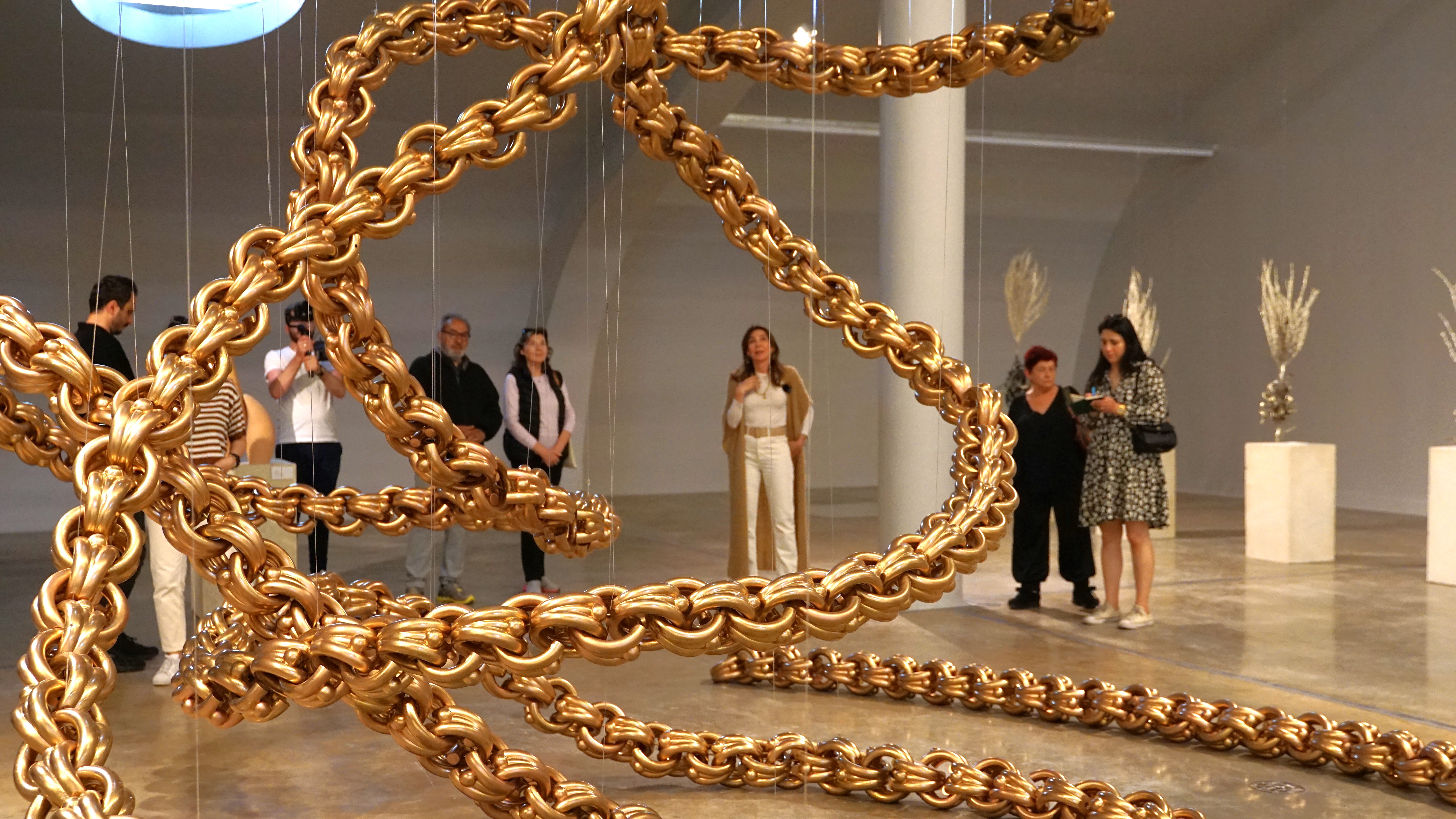 Bayburt’ta yer alan Baksı Müzesi’nin konumu, doğal özellikleriyle -topografyası, ırmağı, bitkileri, tarihin izleri ve gelenekleri- sanatçının zihnine girerek eserlerine yön veriyor. Sergi mekânının merkezinde konumlanan eser “Yaşamın Göbek Bağı”; nehrin akışından, bir yaşam taşıyıcısı olarak sudan, doğuyor; desenler ise bölgedeki rüzgârın enerjisinden besleniyor; bölgenin yerel taşlarından yapılmış kaideler üzerinde yerleştirilen sığır kuyruğu bitkilerinden yaratılan eserler şifa olgusunu esas alıyor; kilden heykellerin kökeni ise toprağa dayanıyor. Sanatçı eserlerin hepsini bağlayıcı ve büyüleyici bir şekilde bir araya getiren etkileyici bir yöntem oluşturuyor, bu da onları tek bir bütün gibi algılamamızı sağlıyor.