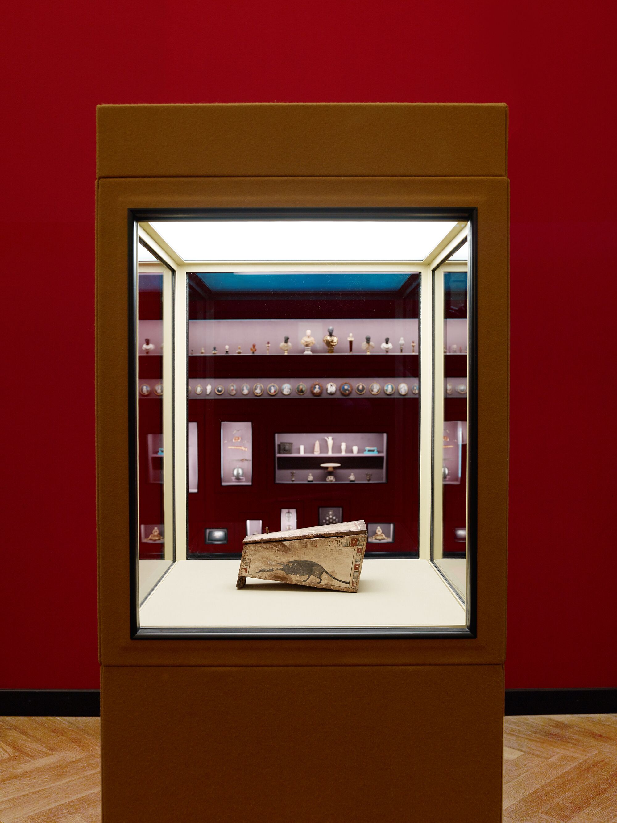 ‘Tabuttaki Spitzmaus Mumyası ve Diğer Hazineler’ adındaki sergi Kasım 2018’den Nisan 2019’a kadar Viyana’daki Kunsthistorisches Müzesinde sergilenmişti. İkinci versiyonu ile Milano’ya taşınan sergi, daha geniş bir alanda ve daha çok eser ile yeniden açılıyor. İki sanatçı ve küratör tarafından yaratılan orijinal sergi odaları ve vitrinleri Fondazione Prada’ya hazır olarak getirildi. Tipik bir Rönesans bahçesini andıran çitler ve çadırlar ile İtalyan bahçelerinden esinlenen sergi planı, Podium’un ilk katına yayılıyor. II. Ferdinand ve eşi Philippine Welser’in koleksiyonlarına ev sahipliği yapması için 1570’de ünlü mimar Giovanni Battista Guarienti tarafından tasarlanan Ambras Sarayı serginin görsel tarihi referansı olarak kullanıldı. Kunsthistorisches Müzesinin bir parçası olan Ambras, dünyanın en eski müzelerinden biri olarak görülüyor. Şimdiye kadar yalnızca egemen ve kraliyet ailesinin zevk ve eğitimi için kullanılan ve ‘Alt Kale’ olarak adlandırılan binalardan biri konuklarla ve ziyaretçilerle sanatsal bir mirası paylaşmak amacıyla tasarlandı.
