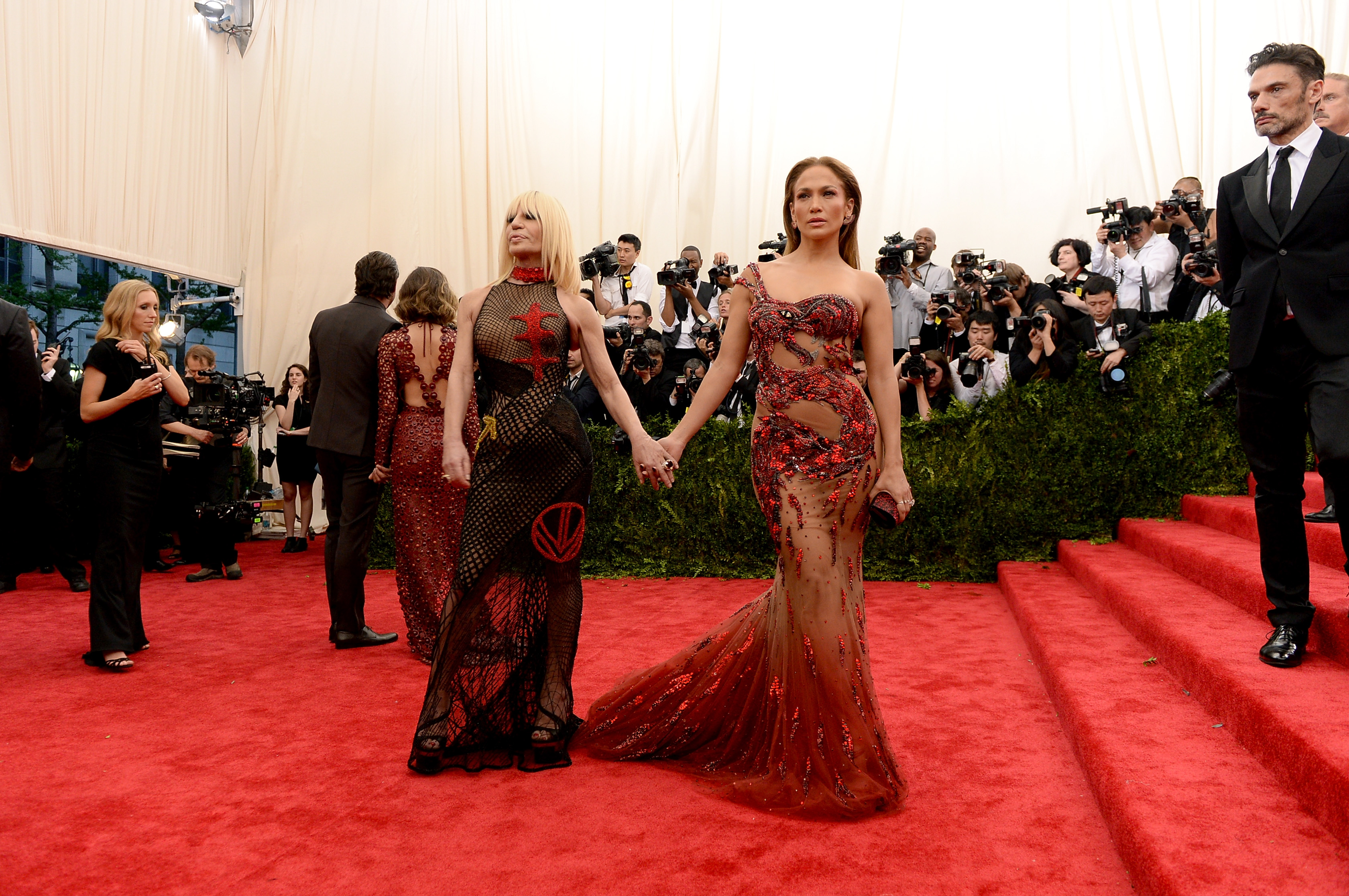 Met Gala 2015, Donatella Versace ve Jennifer Lopez (Getty Images)