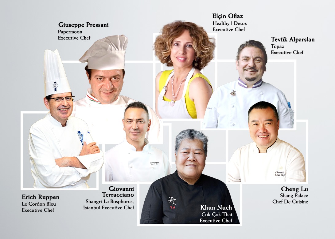 Shang Brunch’ta; İtalyan mutfağını temsilen PaperMoon Executive Chef’i Giuseppe Pressani ve Shangri-La Bosphorus Executive Chef’i Giovanni Terracciano, Çin ve Kanton mutfağını temsilen Shang Palace Chef de Cuisine’i Cheng Lu, Türk mutfağını temsilen 2023 ve 2024 yıllarında Michelin yıldızına sahip Topaz’ın Executive Chef’i Tevfik Alparslan, İsviçre mutfağını temsilen Le Cordon Blue Executive Chef’i Erich Ruppen, Thai mutfağını temsilen Çok Çok Thai Executive Chef’iK hun Nuch ve Healthy & Detox kategorisini temsilen Raw Food konusunda eğitmen & şef Elçin Oflaz hazır bulunacak. Executive Şefler imza yemeklerini lezzet tutkunları ile buluştururken, misafirler tek bir günde 7 ayrı mutfağa ait yemekleri deneyimleyerek, eşsiz bir gastronomi serüvenine doğru yelken açacak.