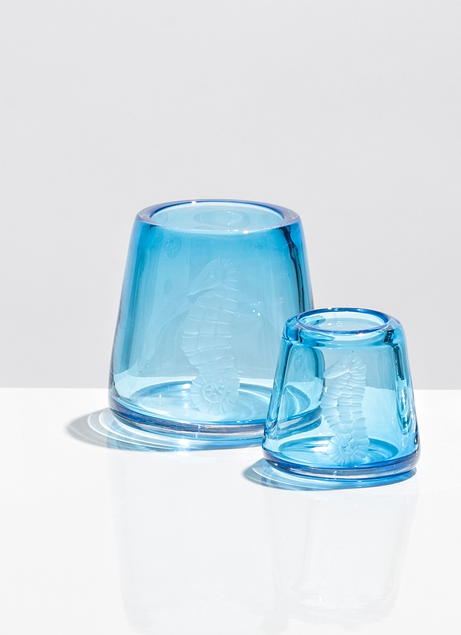 Yaz koleksiyonun öne çıkan bir diğer parçası ise, mumluk olarak da kullanılabilen yepyeni bir vazo. İki boyda ve beş farklı renkte sunulan her bir vazo, denizatı, denizyıldızı, salyangoz, deniz kabuğu ve deniz minaresi gibi el işçiliğiyle işlenmiş farklı motiflerle zenginleşiyor. Çok Yönlü Zarafet olarak tanımlanan bu seri, Fy-shan Glass Studio’nun cam üretiminde fonksiyonellikle tasarımı bir araya getirmesinin en güzel örneklerinden biri olurken, her ortama zarafet katacak eşsiz bir hediye olarak da öne çıkıyor.