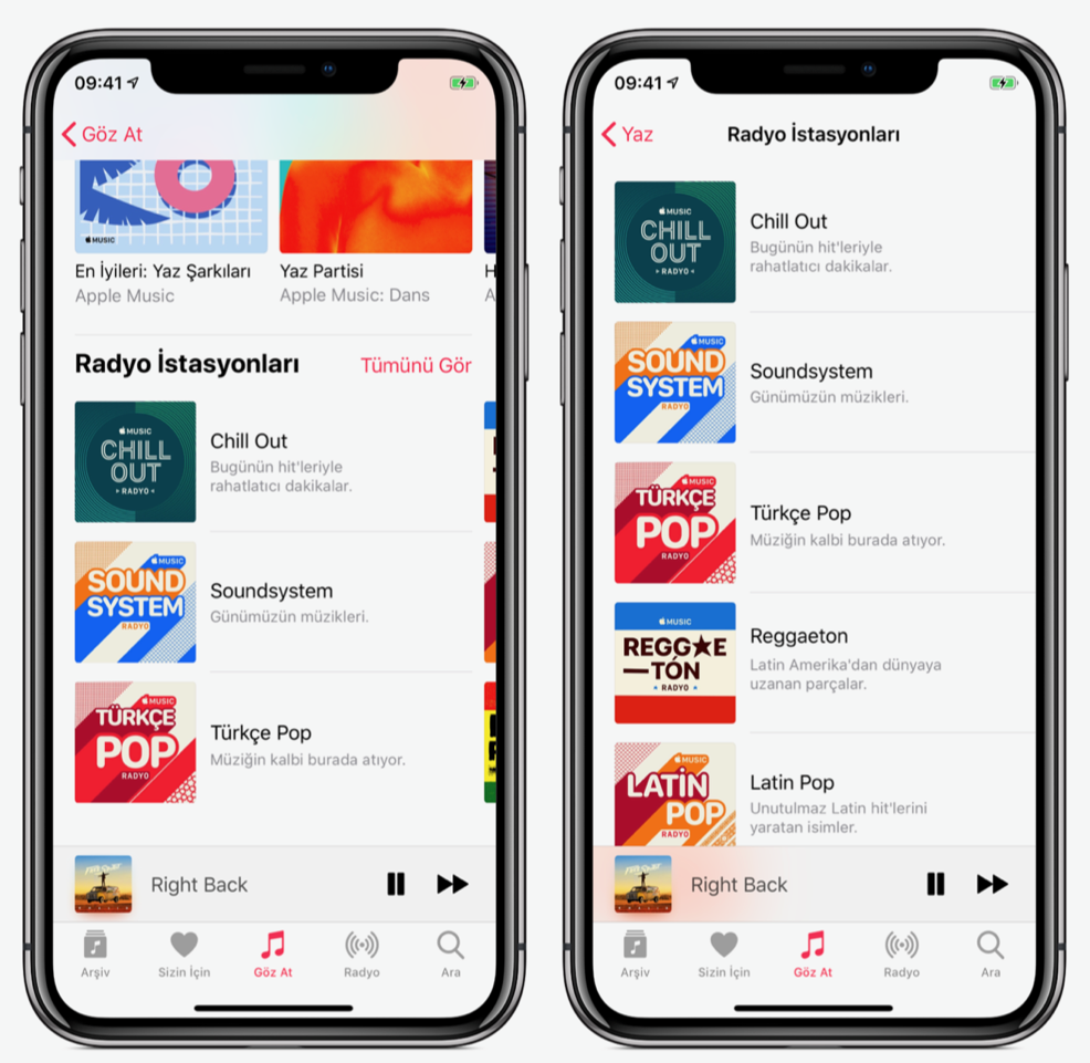 Yaza Özel Odasında Apple Music’e özel keyifli Radyo istasyonlarını dinleyebilirsiniz. Türkçe Pop, Chill Out, Tropikal Müzik, Samba, Hawaii Müziği gibi farklı zevklere göre oluşturulan Radyo istasyonları sayesinde dinlediğiniz her yerden tatile çıkmış hissini alabilirsiniz.