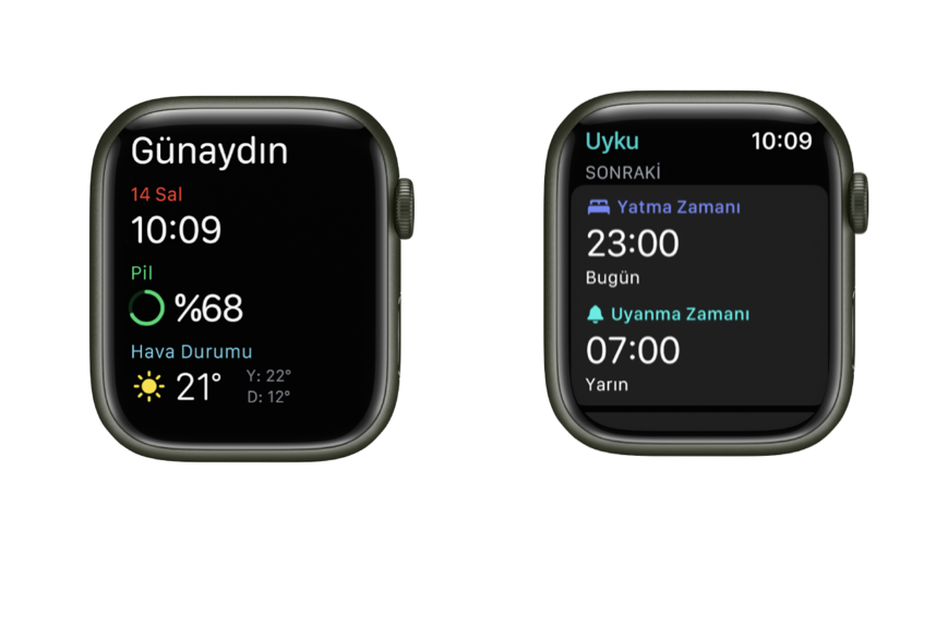 Yeterince uyumanız genel sağlığınız için önem taşıyor. Apple Watch’taki Uyku uygulaması, uyku planı ve yatma zamanı rutini oluşturarak uyku hedeflerinize ulaşmanıza yardımcı oluyor. Apple Watch ayrıca uykuda geçen süre, kalp atış hızı, kanda oksijen ve solunum hızı gibi ölçümleri de takip ediyor.