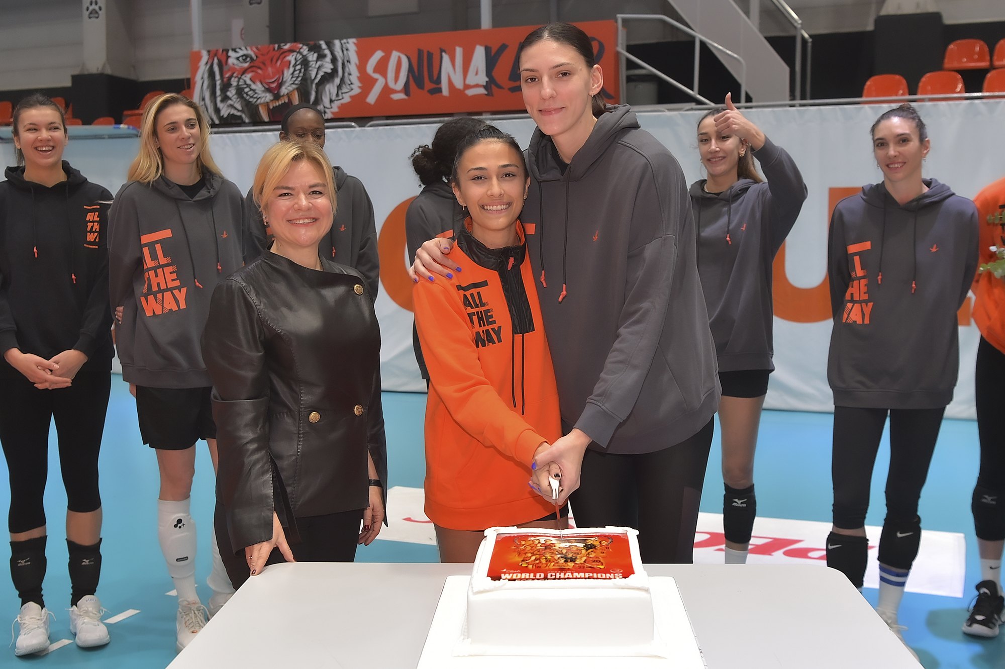 Beymen Group CEO’su Elif Çapçı ve Beymen Club ekibi, dünya şampiyonluğu sonrası 20 Aralık 2023, Çarşamba günü Eczacıbaşı Spor Salonu’nda gerçekleştirilen ilk antrenman öncesi, Eczacıbaşı Dynavit oyuncuları ile bir araya gelerek şampiyonları kutladı.