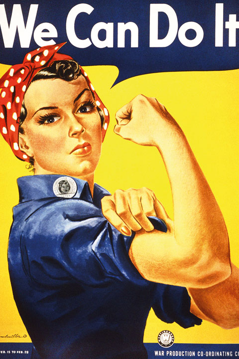 İkinci Dünya Savaşı sırasında kadınların yaptıklarının ve başarılarının altını çizmek için yaratılan hayali kahraman Rosie the Riveter ve onun o çok meşhur posteri, feminizm hareketinin en popüler görsellerinden biri.