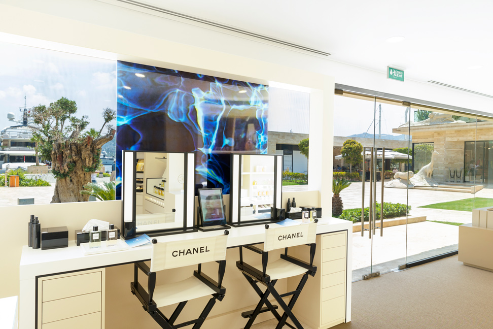 Ziyaretçileri, 2023 LES BEIGES SUMMER koleksiyonu da dahil olmak üzere yeni CHANEL yaz temel ürünlerini gösteren farklı bir ekran karşılıyor. Ortada ise koku serisinin kült klasikleri ve çok sevilen kokuları sergileniyor. Devamında ise LES EXCLUSIFS DE CHANEL parfüm serisini, cilt bakımını ve makyaj koleksiyonları ile karşılaşarak konukların ürünleri deneyebilecekleri ve sahadaki Güzellik Danışmanlarının uzmanlığına başvurabilecekleri bir makyaj barı çıkıyor. Yaz ruhunu, kasanın yanında bir dizi gözlük sergileyerek yansıtıyor.