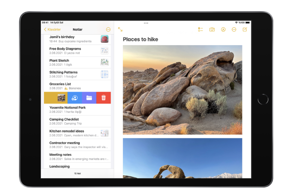 Notlar uygulamasının dışında dilediğiniz her yerde not almak için hızlı ve kolay bir yol sunan Hızlı Not özelliğinden yararlanarak uygulamalara ve web sitelerine ait bağlantıları bile ekleyebilir, böylece daha fazla bağlam bilgisi sağlayabilirsiniz. Ekranın sağ alt köşesini yukarı kaydırarak Hızlı Not oluşturabilirsiniz. iPadOS 15.2’de Hızlı Not özelliğine ekranın sol veya sağ alt köşesini yukarı kaydırarak da erişebilirsiniz. Safari’de ister bir tarif ister bir hediye arıyor olun, fikirlerinizi not etmek için sistemin dilediğiniz yerinde Hızlı Not özelliğini açabilirsiniz. Ayrıca, bağlam bilgisi sağlamak için bir uygulama veya web sitesinin bağlantılarını ekleyebilirsiniz. iPad’inizde oluşturduğunuz Hızlı Notları iPhone ve Mac’inizde de görebilirsiniz.