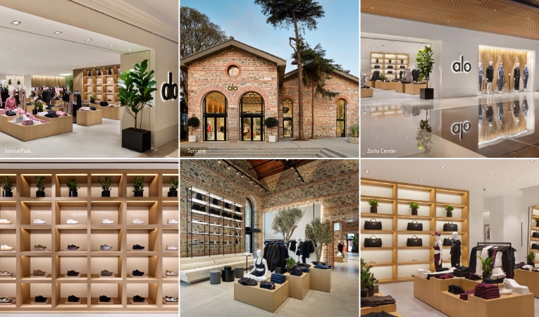 Mağazalar, ALO’nun global mimari dili doğrultusunda; doğal malzemeler, sade yüzeyler ve katmanlı aydınlatma gibi unsurlarla tasarlandı. Bu alanlar, markanın hareket, stil ve farkındalık ekseninde kurguladığı deneyim yaklaşımını yansıtacak şekilde düzenlendi.
