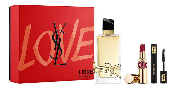Hediye setinin içerisinde Libre Eau de Parfum 90 ML, Mini Mascara Volume Effet Faux Cils n°1 Siyah Maskara ve Mini Rouge Volupte Shine n°85 ruj yer alıyor.