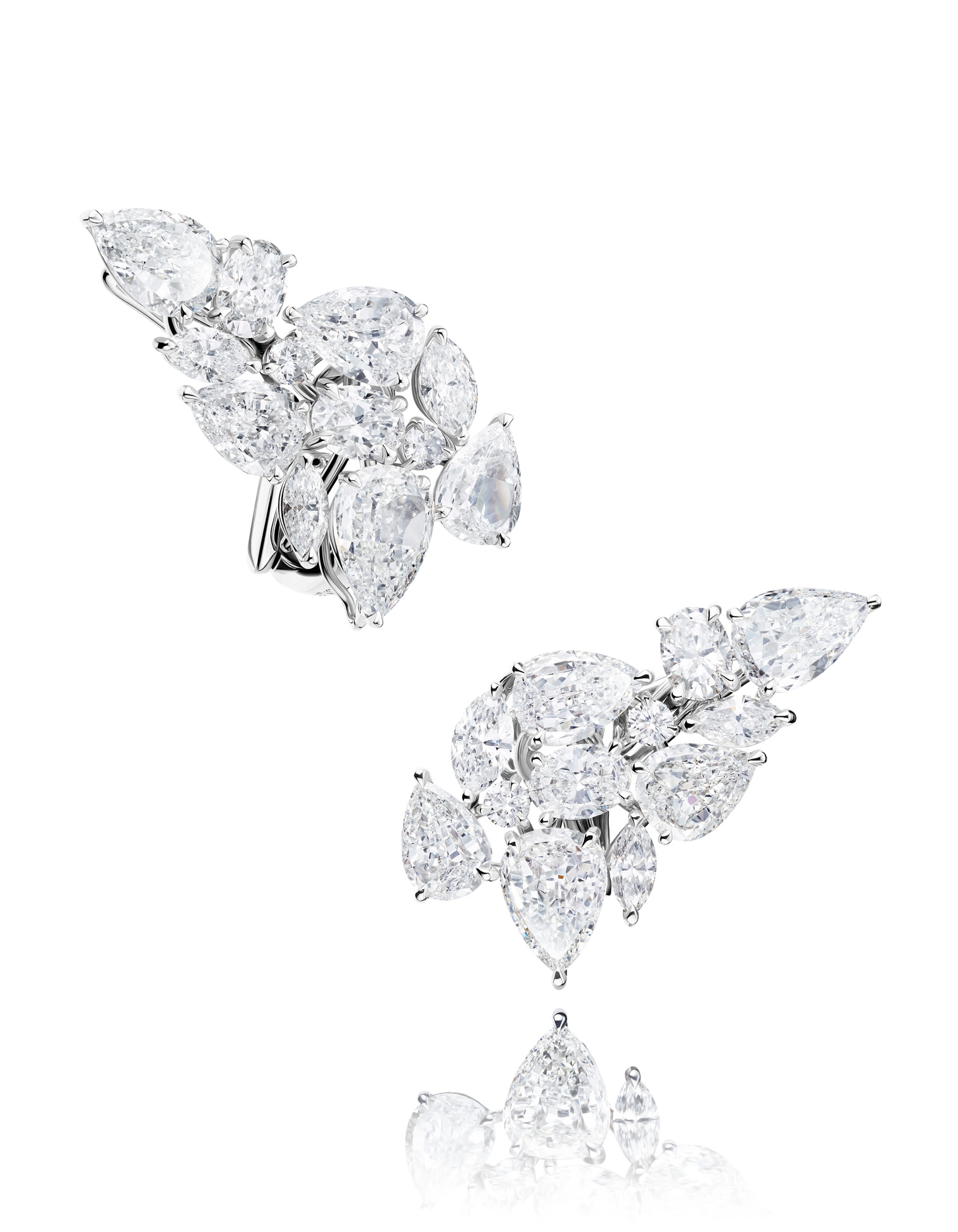 Doğanın saf güzelliğini sanat eserleriyle biraraya getiren Roma’nın dillere destan Tivoli bahçelerinin adını taşıyan rengarenk koleksiyonun devamı olan pırlanta kolye ve küpeler kış bahçelerine övgü niteliğinde. Kolyenin pırlantalarla bezeli dalları Adler’in imzası niteliğindeki asimetri ustalığı sayesinde boyunun kıvrımını zarafetle sarmalıyor. Cömert karatlara sahip pırlanta yaprakların düzensiz dizilimiyle canlandırılan dallar hafif bir meltem esintisiyle boynun en narin noktasında usulca birbirlerine değiyorlar. Gizli bir sabitleme tekniğiyle kolyeye monte edilebilen ve istenildiğinde ayrılabilen 3.01 karatlık damla kesim pırlanta pandantif dallardan düşen çiğ damlasını hatırlatıyor. Kolyenin takımı olan küpelerin tasarımı gereği yapısı son derece hafif ve kullanışlı.