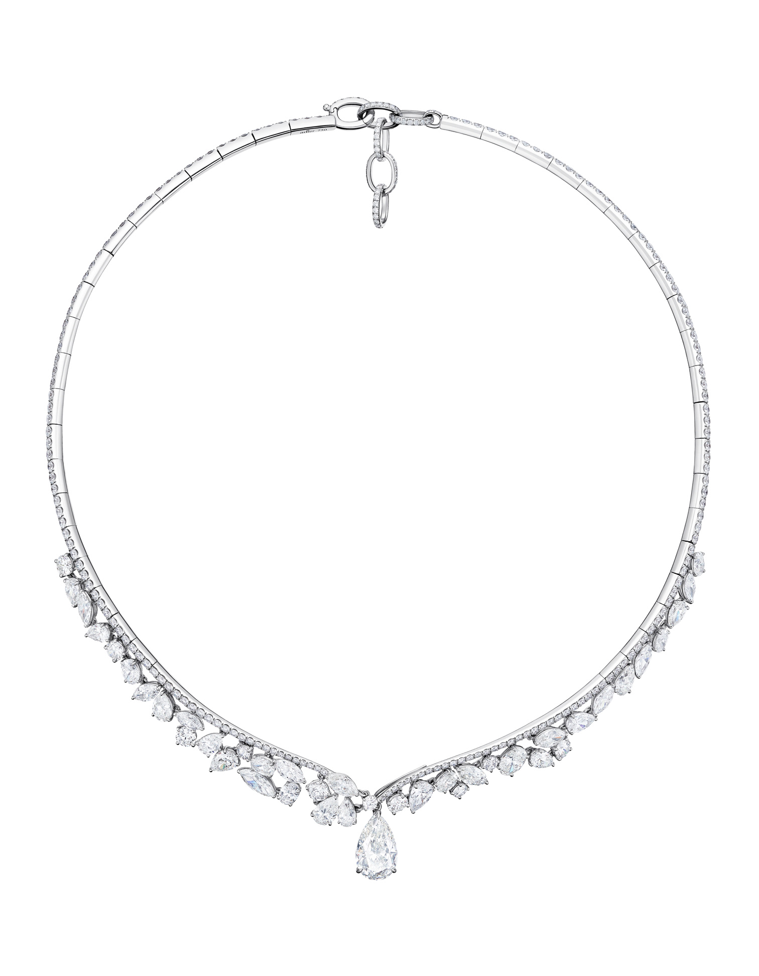 Tabiatın yoğun coşkusundan aldığı ilhamla, Adler’in yaşam sevincine ithaf ettiği Tivoli adlı koleksiyonun kolyesinin esnek montürü pırlanta yaprakların ışıltısının artmasını sağlamış. Doğanın içinde barındırdığı tarifsiz güzellikteki çeşitliliği yansıtmak için, markiz, yuvarlak ve oval gibi farklı kesimlerde taşlar kullanılmış. Ve ustalıkla tasarlanan hafif ve eklemli yapı sayesinde köprücük kemiği üzerine zarafetle oturan kolye son derece konforlu.