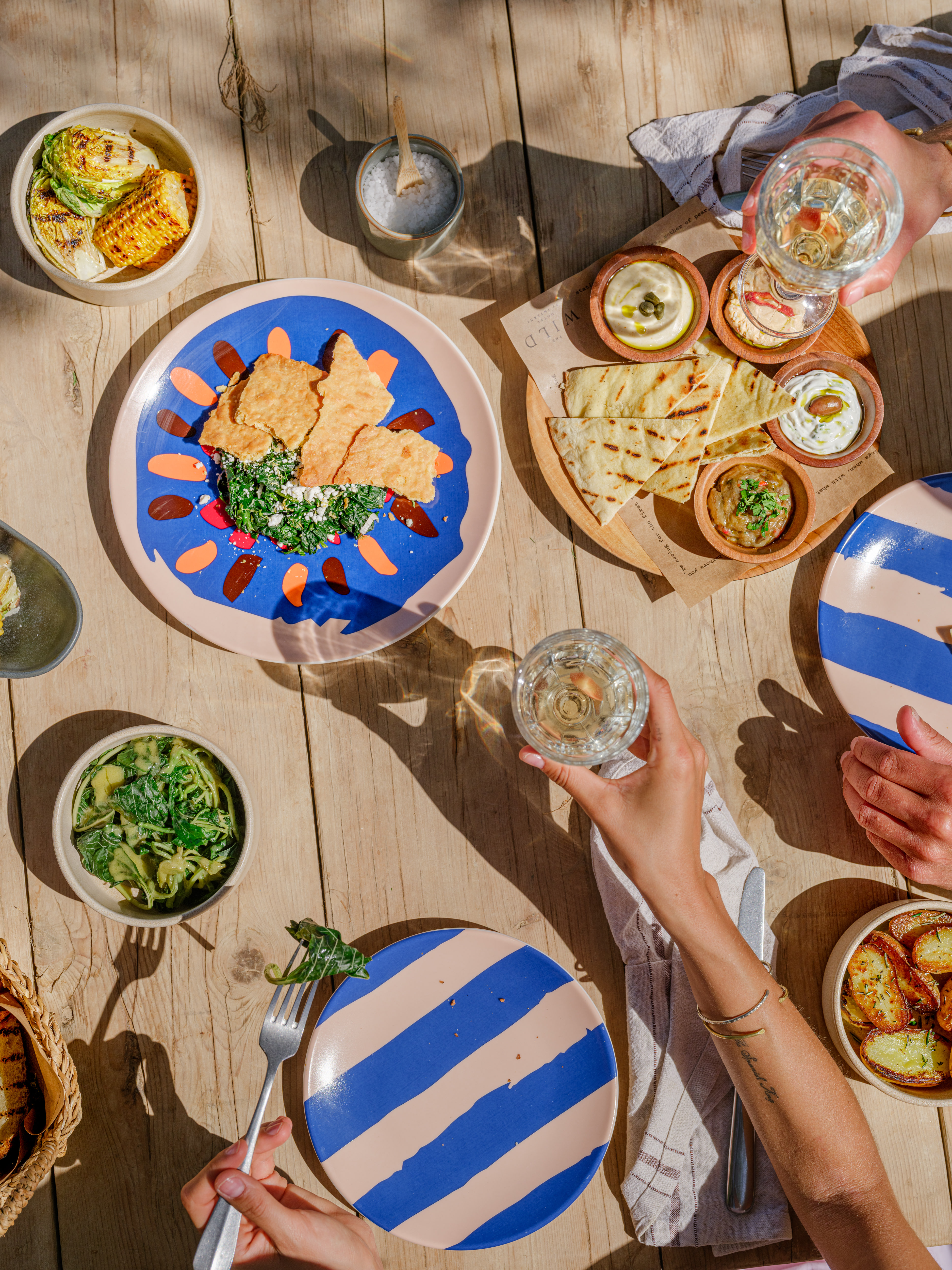 Bu koleksiyonda canlı desenler ve renkli kumaşlar The Wild Hotel’in plaj ve havuz şezlonglarını süslemekte. Akdeniz restoranı Taverna’daki özel üretim tabaklar, renkli ve çizgili desenleriyle masaları güzelleştiriyor. Rianna’nın tasarımları, masa düzenlerinden oda detaylarına kadar, gündelik anları Yunan kültürüyle zamansız bir deneyime dönüştürüyor.