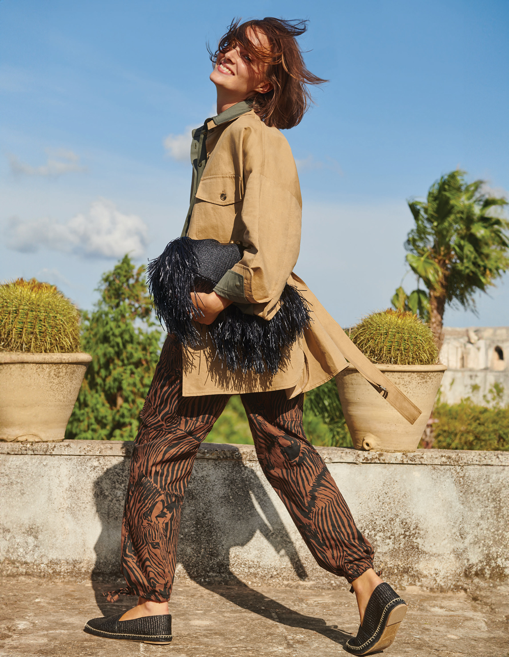 Kendine özgü çizgisiyle öne çıkan, rahat ve şık parçalar bu koleksiyonun odak noktasında yerini alıyor. Safari esintileri, Akdeniz'in sıcak atmosferiyle mükemmel bir uyum içinde yeniden yorumlanırken; kontrast renkli çizgili üstler, safari ceketler ve egzotik desenli pantolonlar, sıcak yaz güneşinin eşlik ettiği yolculuklarda hem şıklık, hem rahatlık vadediyor. Pasticcino Bag ise güncellenen formuyla kahramanımızın seyahatlerindeki sadık yol arkadaşı olarak yeniden başrolde!