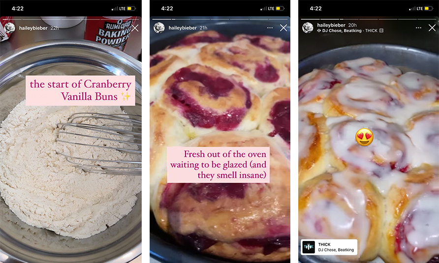 Şükran Günü'nden sonraki Pazar günü kutlama yemeğinden kalanlar ile tarifler yapan Hailey Bieber, yabanmersini sosu ile harika bir çörek tarifi paylaştı. Tarif konusunda fazla spesifik olmasa da Bieber’ın bu çöreklerini yapmak çok kolay! İnternette de bulunan vanilyalı ve yabanmersinli çörek tarifi, Bieber’ın paylaşımlarından sonra en çok arananlar arasında. Evde daha çok kalmaya başladığımız bu zamanlarda yeniden yemek yapma eğlencelerine dönebiliriz!