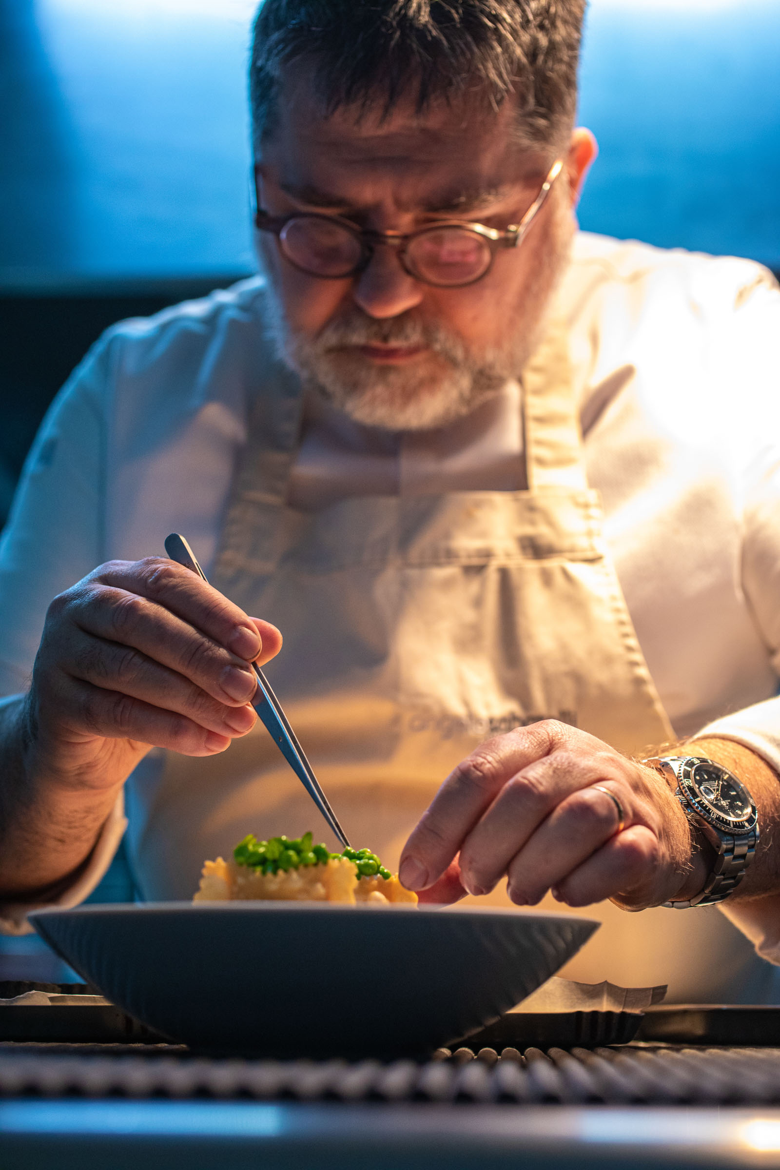 Apulya gastronomisinin ustası Şef Angelo Sabatelli, Puglia’nın geleneksel lezzetlerini modern bir bakış açısıyla yeniden yorumlamasıyla tanınıyor. Yemeğine hem lüks hem de mütevazı malzemeleri ustalıkla dahil eden Sabatelli, Puglia’nın eski lezzetlerini modern tekniklerle harmanlıyor. Shangri-La Bosphorus için hazırladığı 8 aşamalı menüsünde, çocukluk anılarına dayanan ve babasına ithaf ettiği olgunlaşmış lahana, hardal, bal ve polen kombinasyonu gibi çağdaş dokunuşlarla zenginleştirilen özel yemekler yer alıyor. Her yemek, çıtır nohut unu bezesinden, balkabağı risottosu ile siyah trüf ve rokfor püreli dokunuşlara kadar lüks ve mütevazı malzemeler arasında uyum yaratma felsefesini yansıtıyor. Ayrıca, buğday kabuğunda pişirilmiş dana yanağı ve tonka fasulyesiyle harmanlanmış çağdaş tatlar da menüde yer alıyor. Şef Sabatelli’nin "İstanbul’da Bir Gece" adlı sürpriz sorbesi ve Sicilya’nın Cannoli’si, Napoli’nin Babà tatlısı ile tatlı kapanış yapıyor.