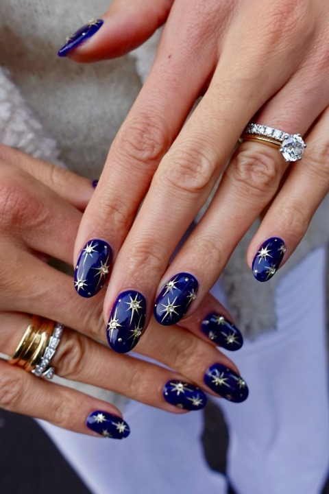 Koyu mavi üzerine altın taşlı yıldız detaylarıyla bu model bu kış kesinlikle denemeye değer.