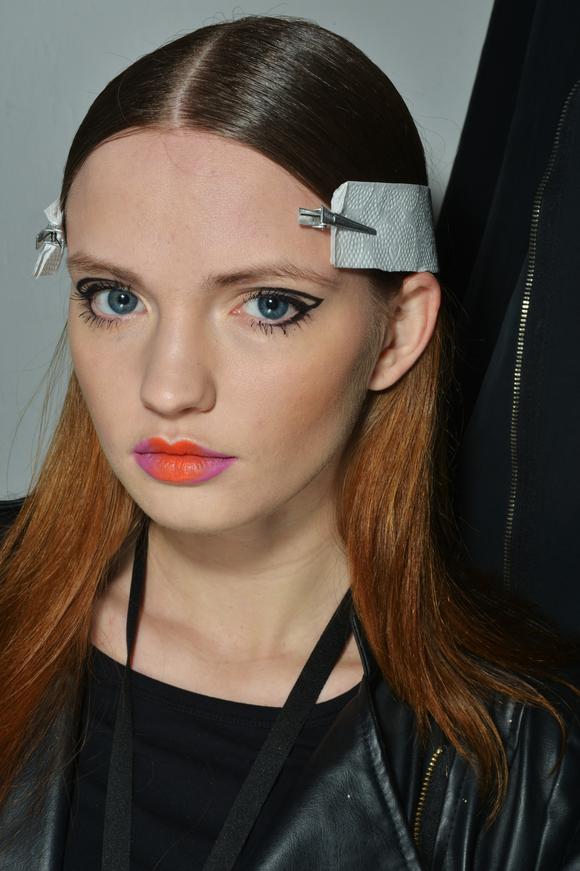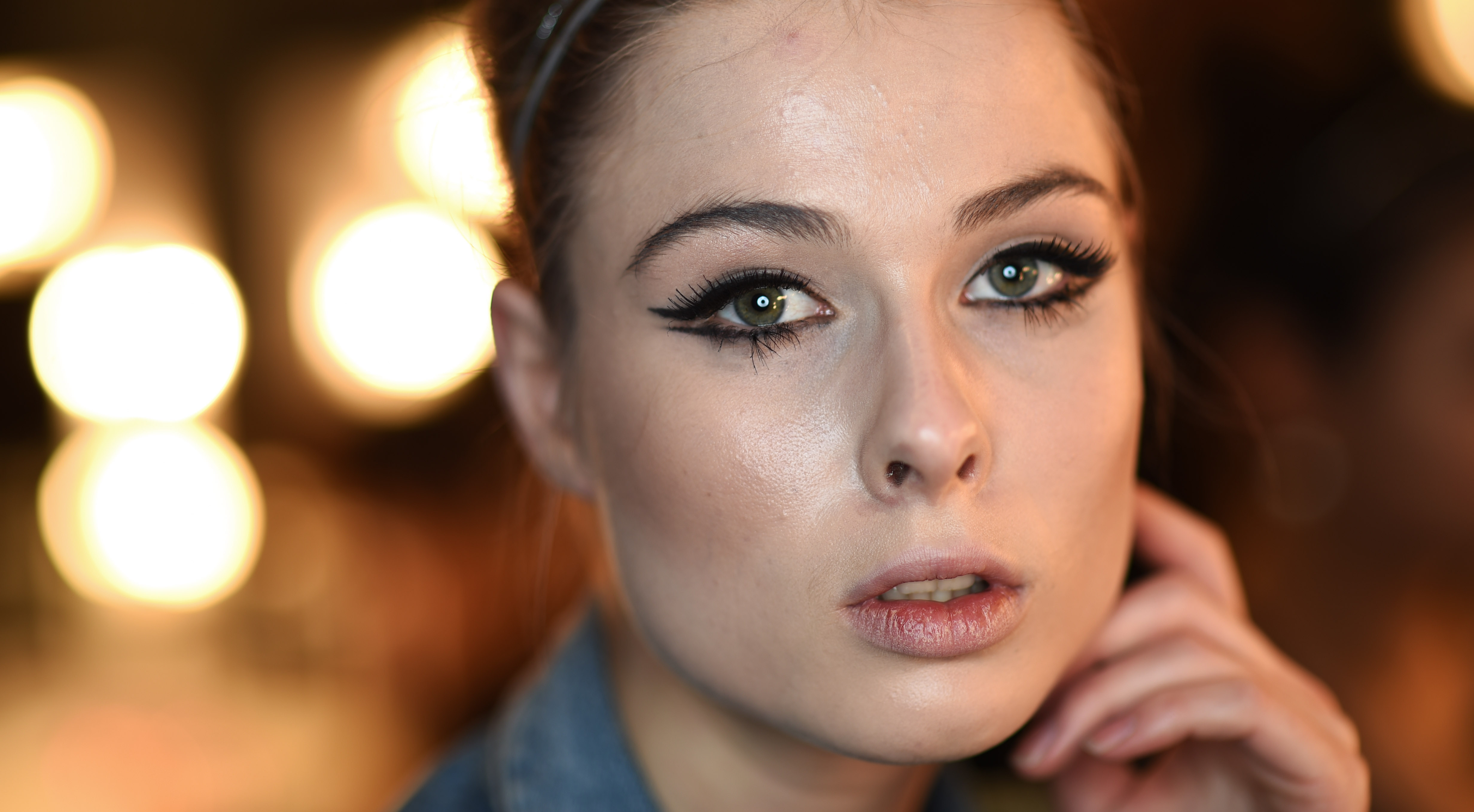 İki kuyruklu eyeliner; göz altına da kuyruklu bir eyeliner çekilerek gözün çekikliğini artıran bu model için likit ve kalem eyeliner kullanılmış.