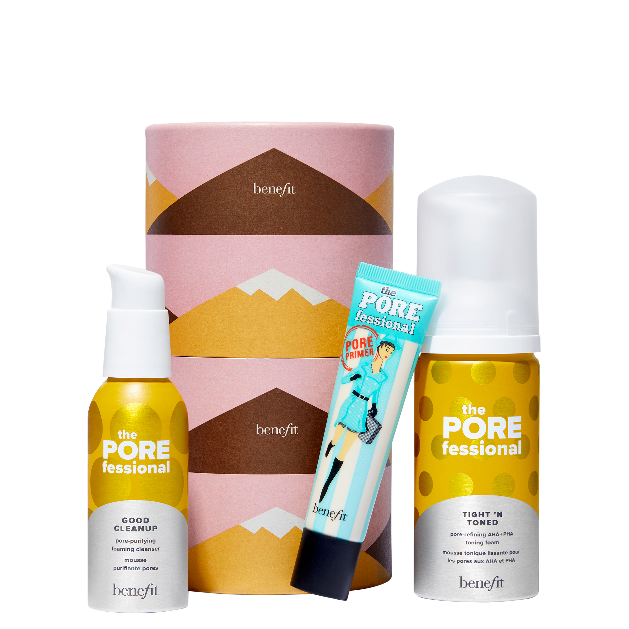 Pore Score: Gözenek görünümüne karşı set. İçindekiler: The POREfessional pürüzsüzleştirici etki için baz,The POREfessional Good Cleanup yüz yıkama jeli - mini boy, The POREfessional Tight n’ Toned AHA+PHA içeren köpük formunda tonik - mini boy, The POREfessional Deep Retreat derinlemesine gözenek temizliği için kremsi kil maskesi - tek kullanımlık Fiyat: 2.437 yerine 1.599 TL