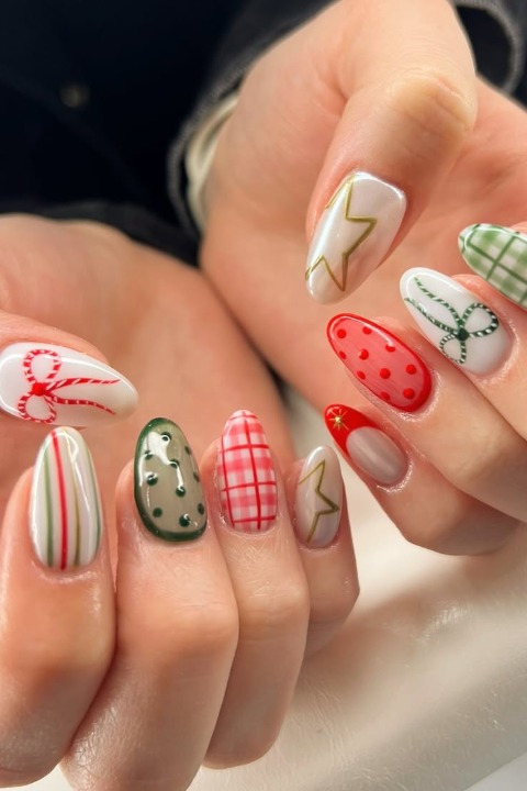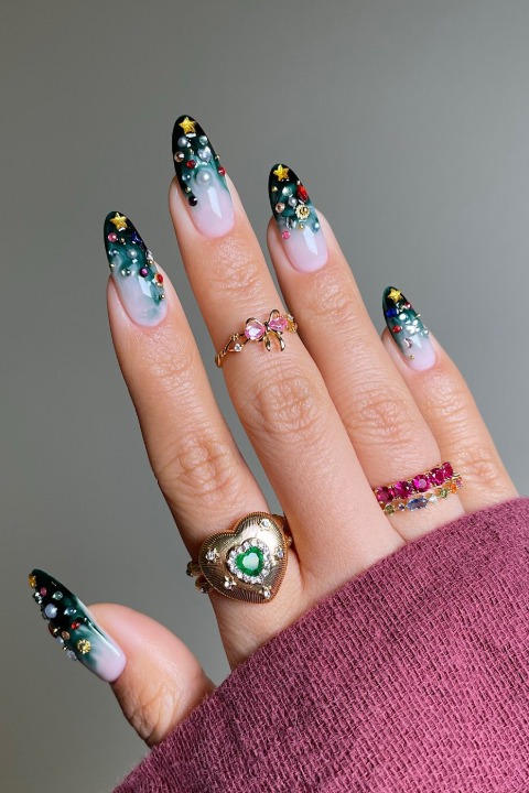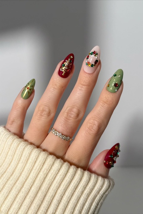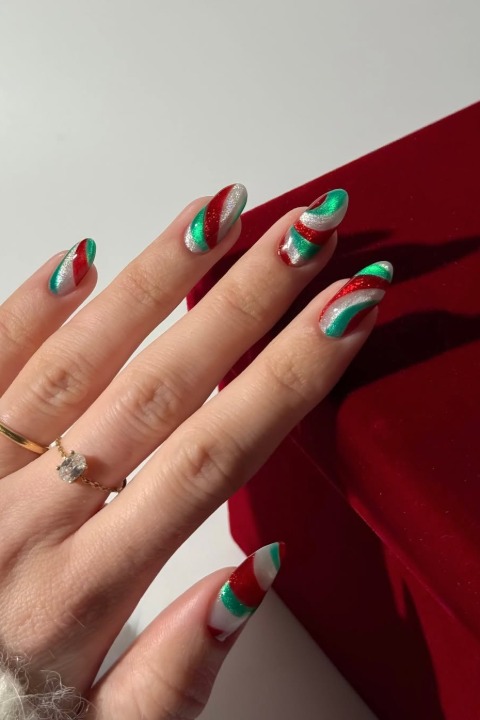 Eğlenceli detaylar ve parıltılar… Daha renkli bir model arayanlar için bu tırnaklar yılbaşı stiline enerjik bir dokunuş katıyor.