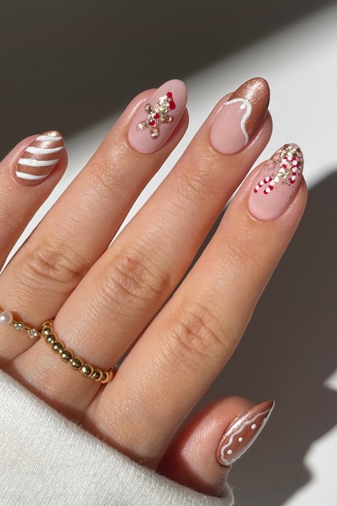 Tarçınlı kurabiye kokularını hatırlatan “Gingerbread Nail Art”, yılbaşı manikürüne sıcak ve eğlenceli bir dokunuş ekliyor.