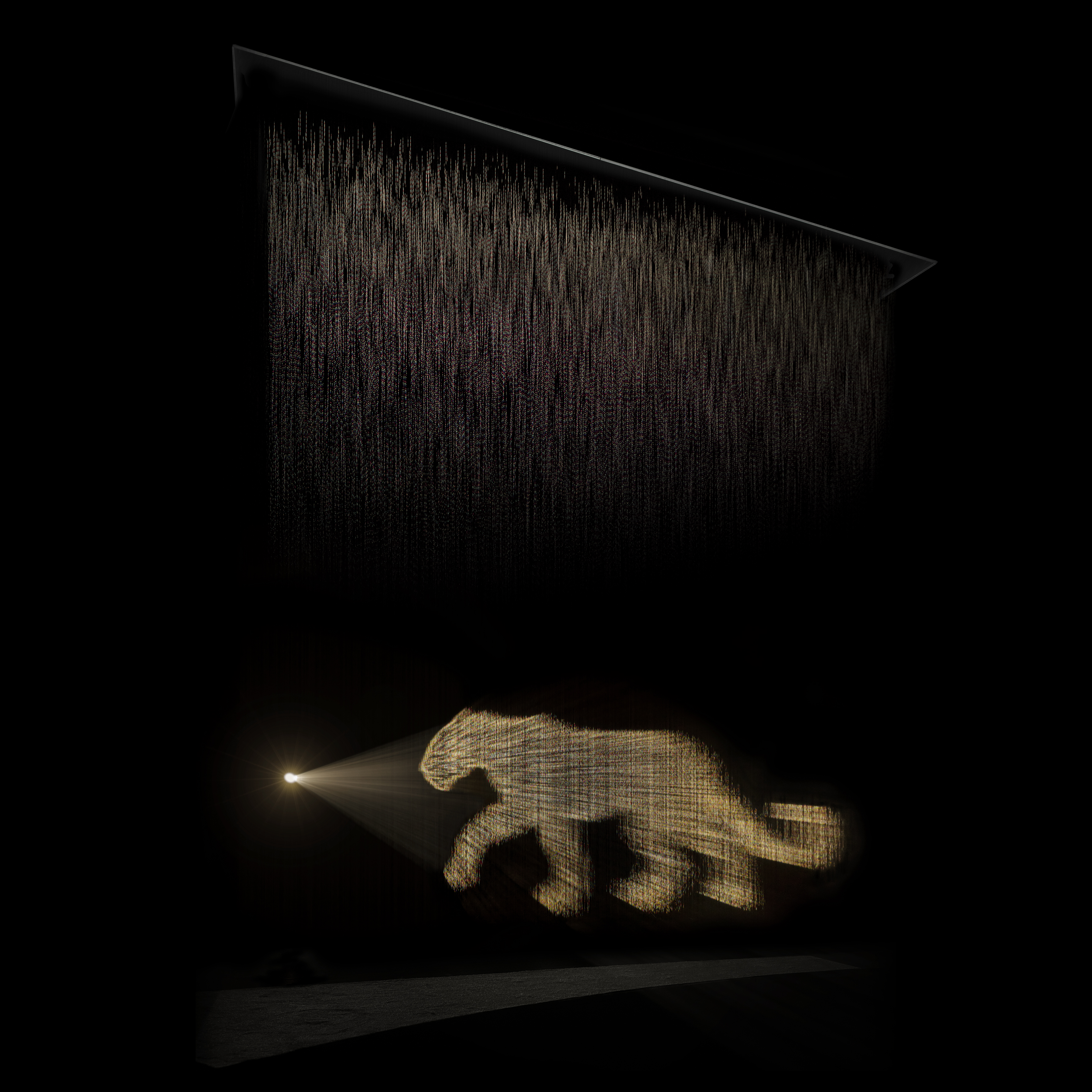 Enstalasyonun merkezindeki Panther'le baş başa kalan karşılaşma, tamamen tüketen ve neredeyse meditatiftir. Gizemli hayvan dolaşır, çeker, kendisine yaklaşılmasına izin verir ve dokunmaya çalıştığınız anda binlerce ışıklı parçacık halinde gözden kaybolur. Panter kayboldu, ancak kokusu kaldı, yumuşak, kadifemsi bir his ve kokulu ve ışıltılı bir iz bırakarak ziyaretçiye görünmez bir aura verdi.