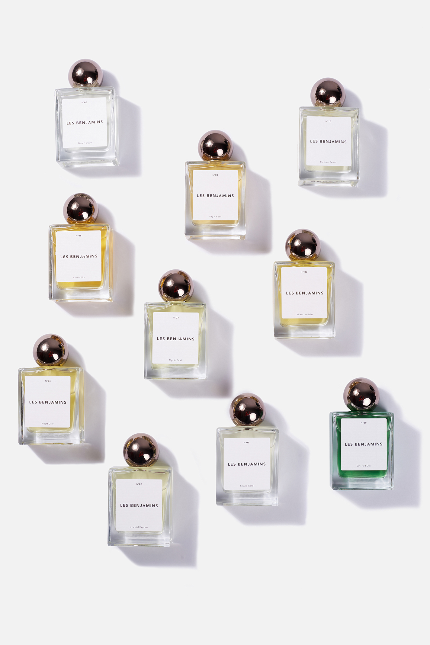 Çökmekte olan odunsu çiçeklerden dumanlı çiçek akortlarına - Night Dew, Oriental Express, Desert Dawn, Vanilla Sky ve Precious Petals, Les Benjamins Fragrance serisinin diğer koku portföyünü oluşturuyor.