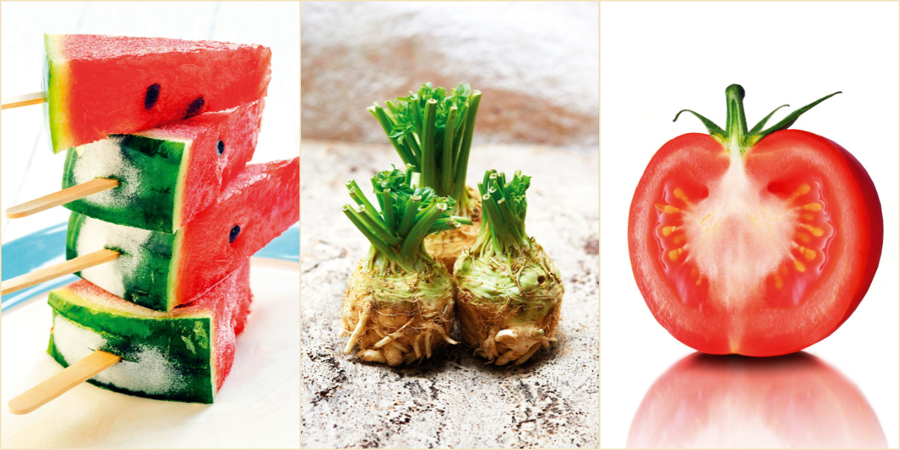 Salatalık, domates, karpuz, çilek, kereviz gibi pek çok sebze ve meyve bolca su içeriyor. Belki de o yüzden özellikle sıcak havalarda canımız en çok bunları çekiyor!