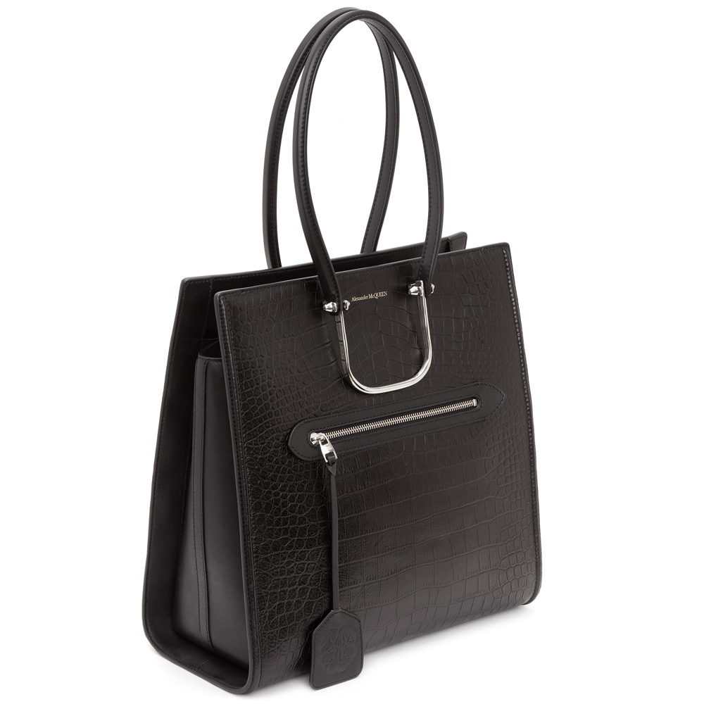 Mücevherlerden ilham alan gold renkli katlanabilir modern metalik kulpları ile elde taşınabilen Alexander McQueen Tall Story, istendiğinde deri askılarıyla omuzda da kullanılabiliyor.